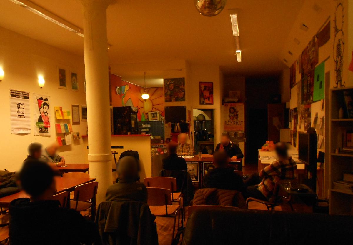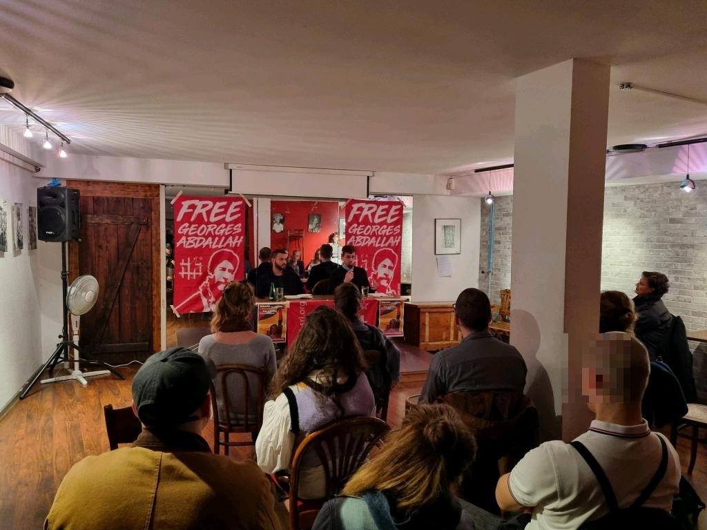 The evening before, the Network for Freedom for all Political Prisoners organized an evening of information and discussion in solidarity with Georges Ibrahim Abdallah. A representative of Samidoun and a representative of Ak Palestine intervened at the event.