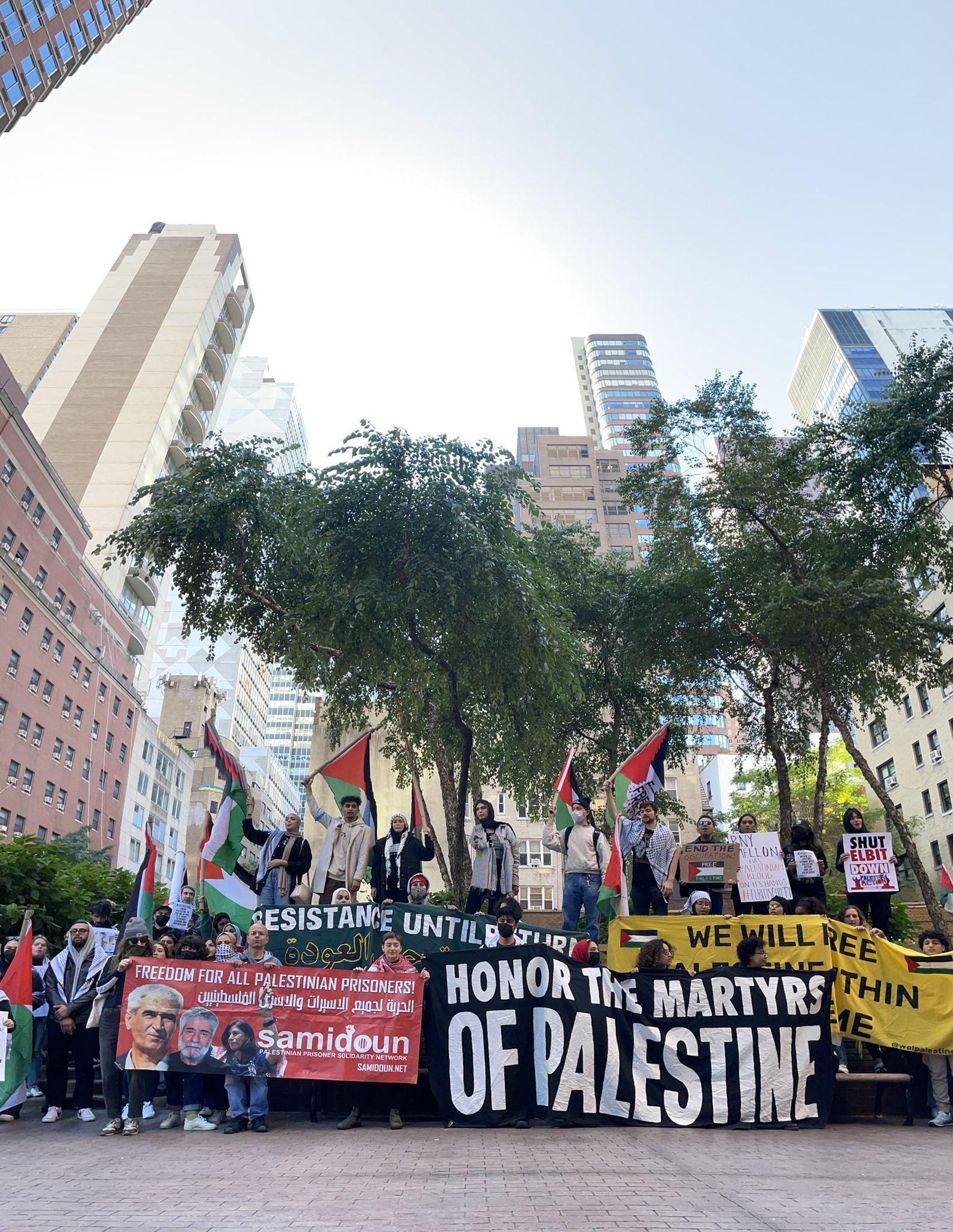 During a rally organized on October 13 in New York, activists from Samidoun NY/NJ unfurled a banner for the release of Palestinian prisoners, including Georges Abdallah.