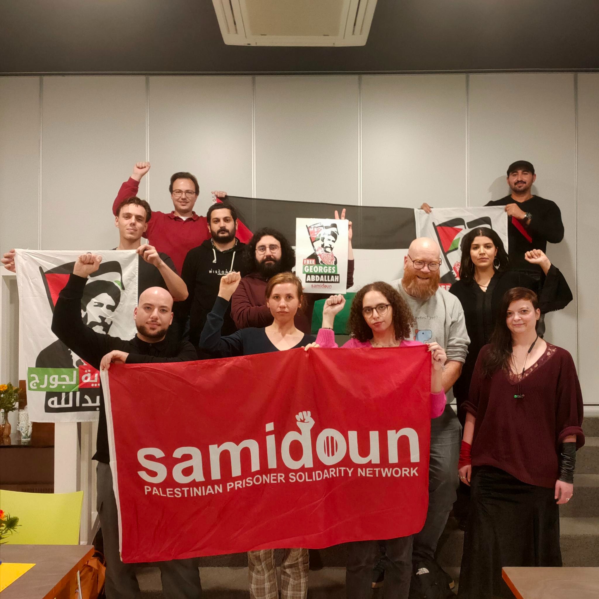 At the end of a screening of “Fedayin” on 14 October in solidarity with Georges Abdallah, supporters of Samidoun Nederland took a photo to reaffirm their solidarity with the Lebanese communist activist unjustly imprisoned in France.