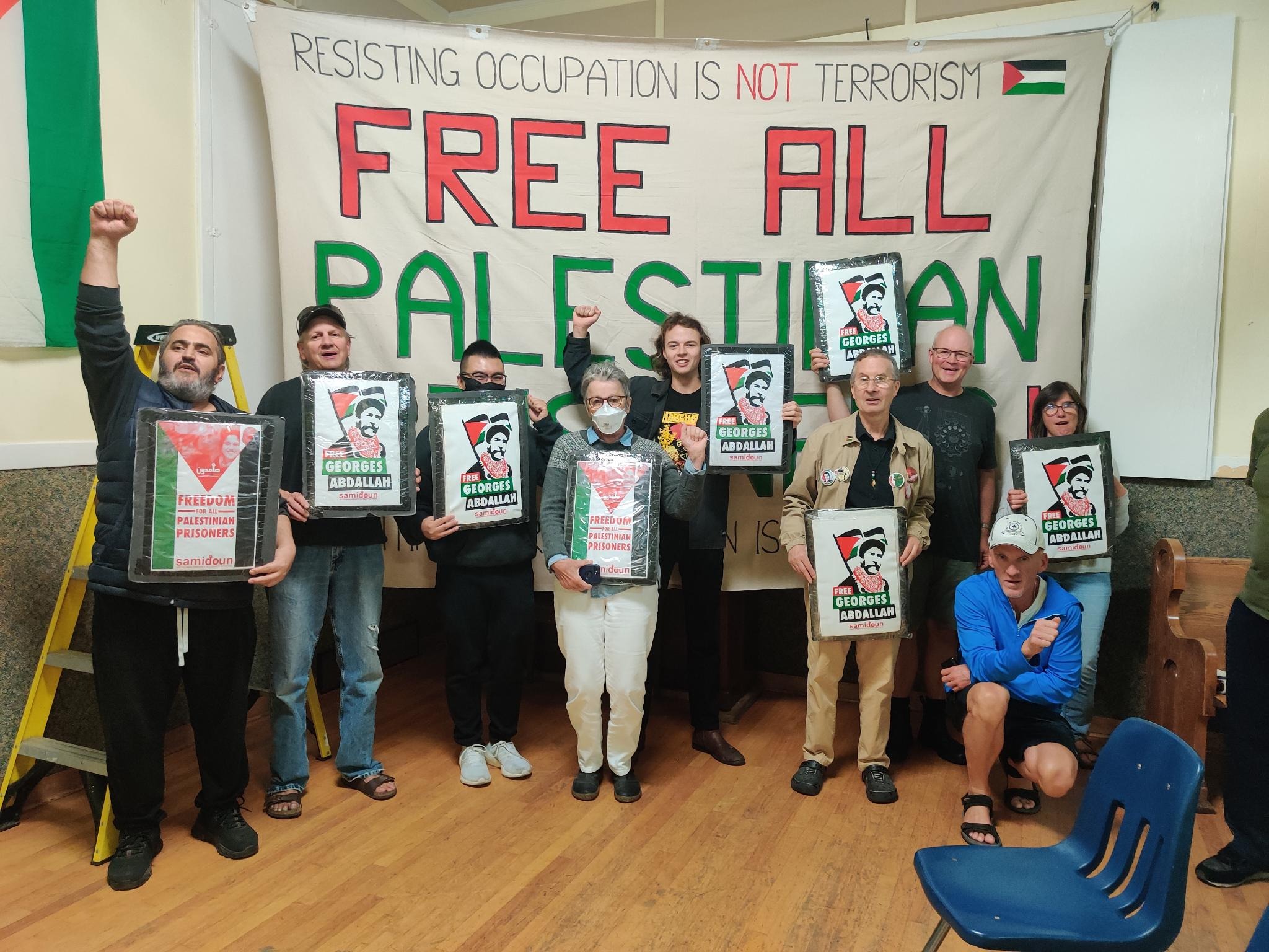 On the occasion of a screening of “Fedayin: Georges Abdallah’s Fight” organized by Samidoun Vancouver on October 18, supporters took a solidarity photo calling for Abdallah’s liberation.