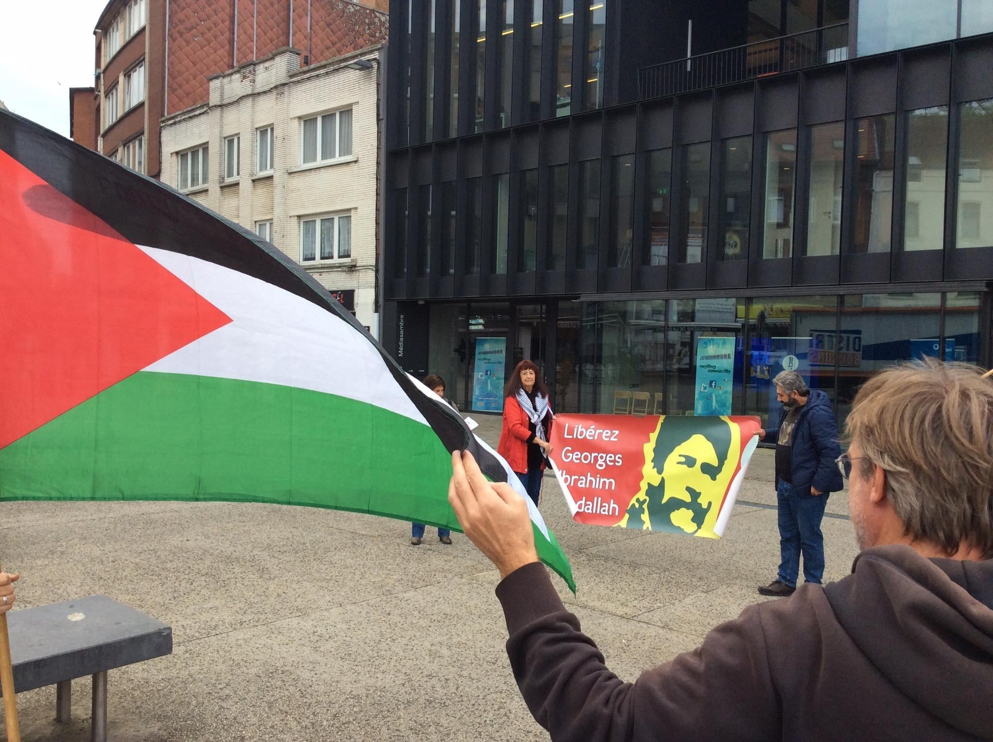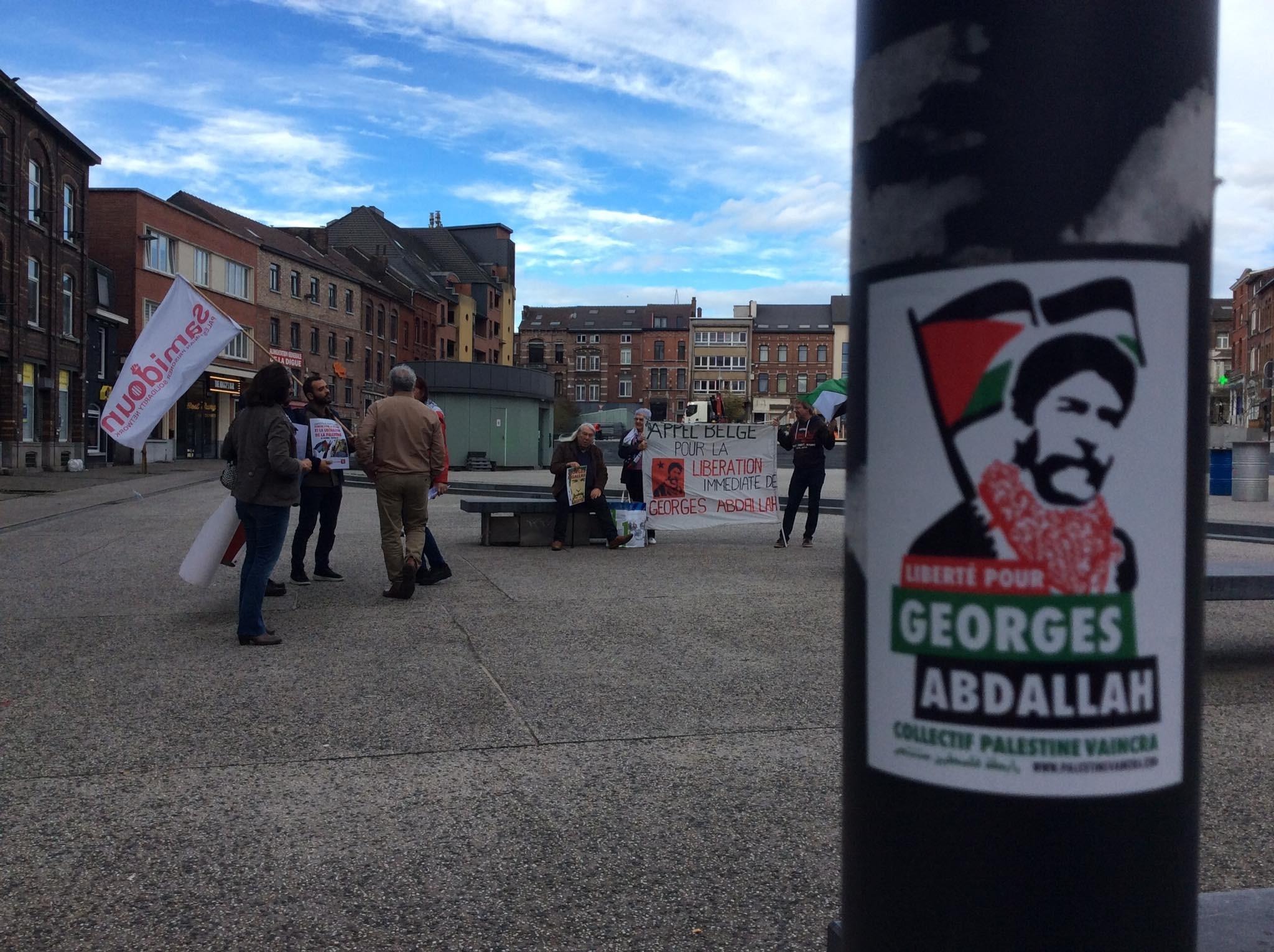 The Plate-forme Charleroi-Palestine , a member organization of the international Samidoun Network, organized an awareness-raising action for the release of Georges Abdallah on the Place de la Digue on 21 October.