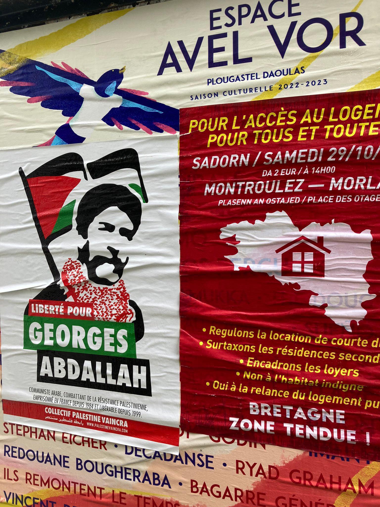 Posters were displayed in these two Breton cities in support of the release of Georges Abdallah during this month of mobilization.