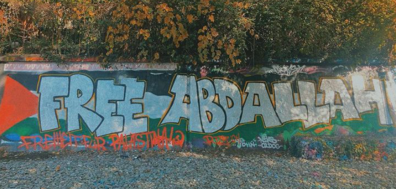 Giovani Palestinesi d’Italia organized a contingent for the release of all Palestinian prisoners during a demonstration in Bologna on 21 October. On this occasion, posters for the release of Georges Abdallah were displayed along the route as part of their participation in theInternational Week of Support for Palestinian Prisonersinitiated by the Palestinian Youth Movement.