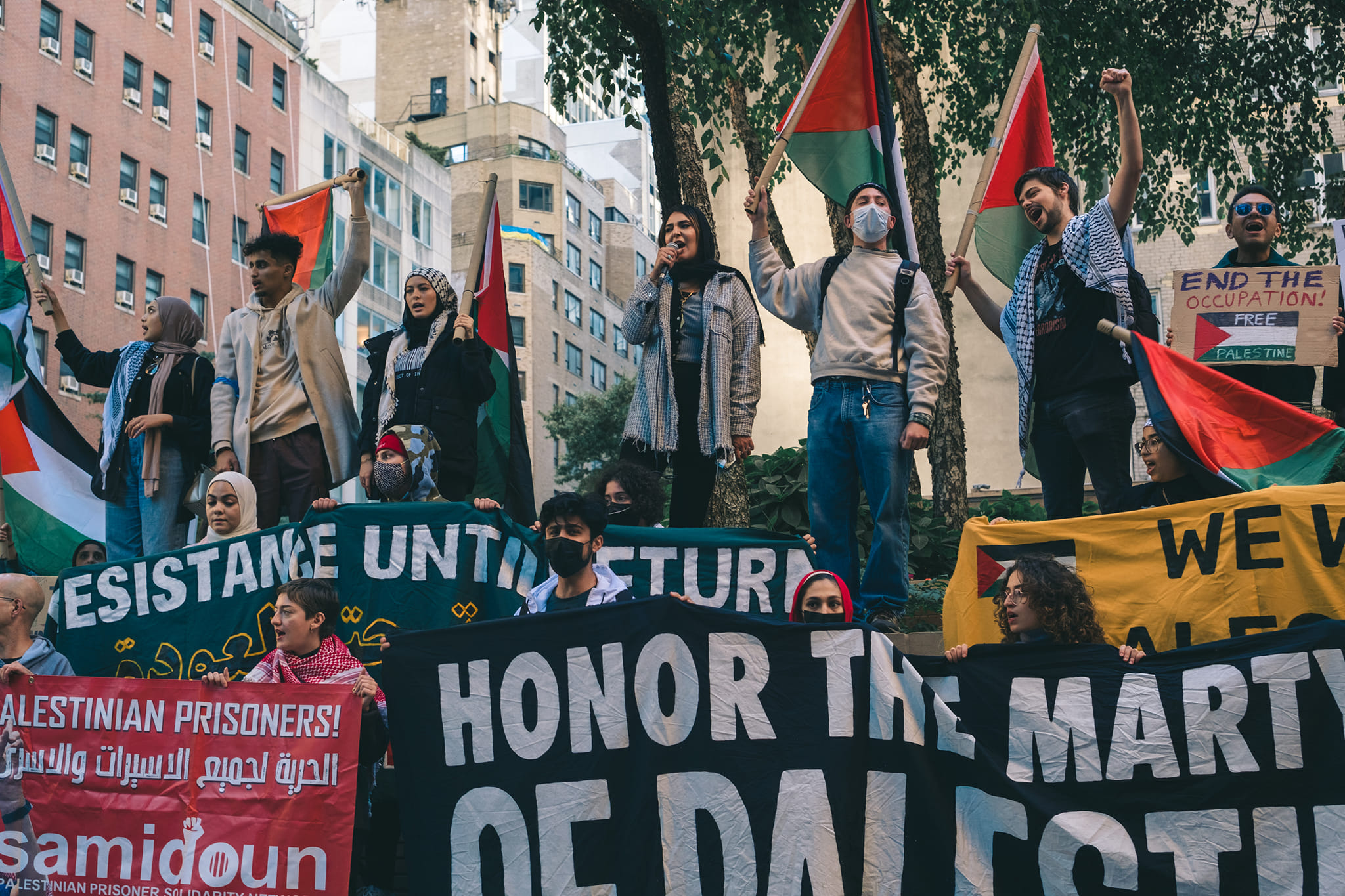 During the demonstration, Laila Boutros, Joe Catron and Hassan spoke on behalf of Samidoun NY/NJ.