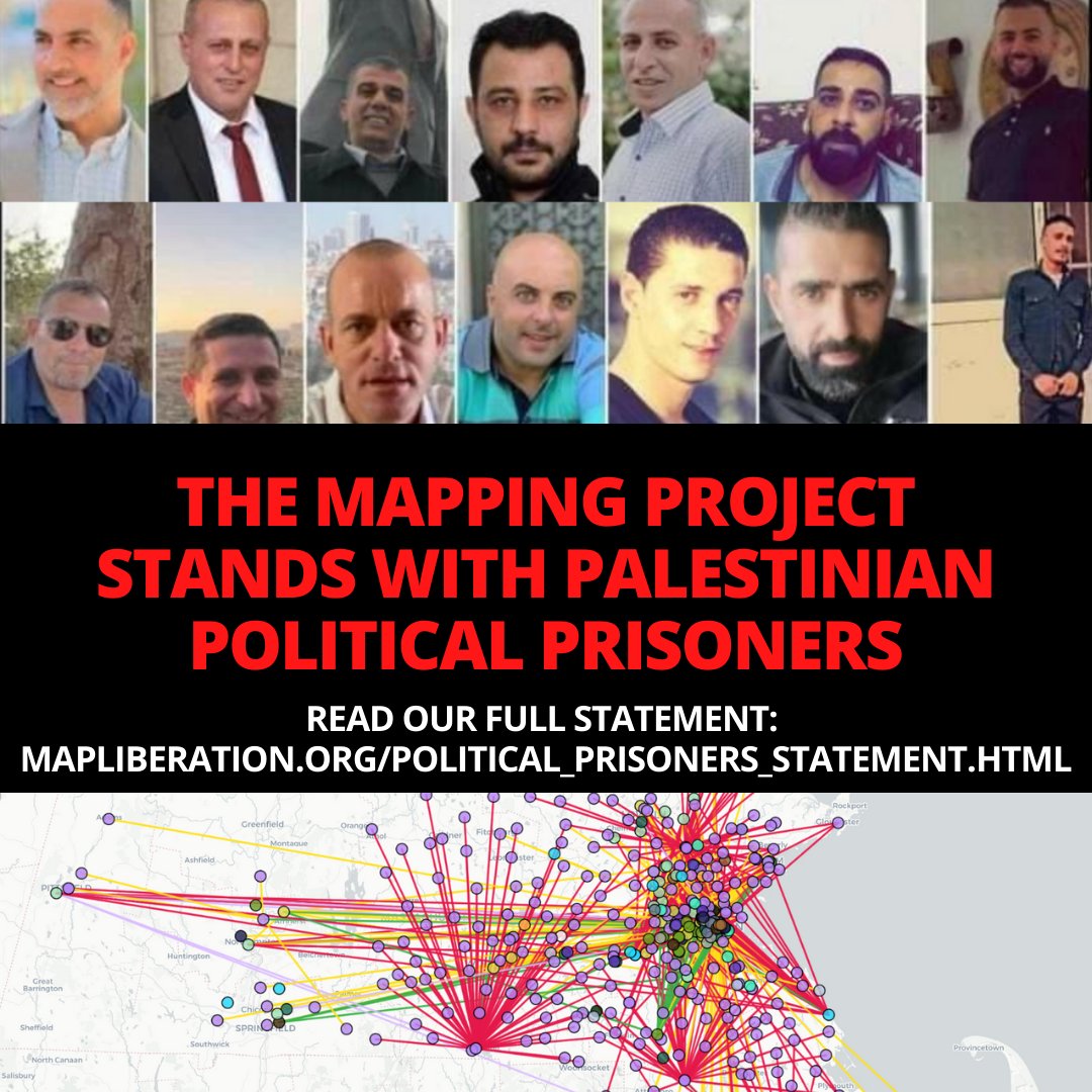 The Mapping Project stands with the heroic Palestinian resistance and supports the ongoing demand to free all Palestinian political prisoners. Let’s make our support for Palestinian political prisoners and those oppressed by carceral systems here more than just symbolic. Let’s organize ourselves to disrupt the actual work of these oppressor institutions, wherever they are.