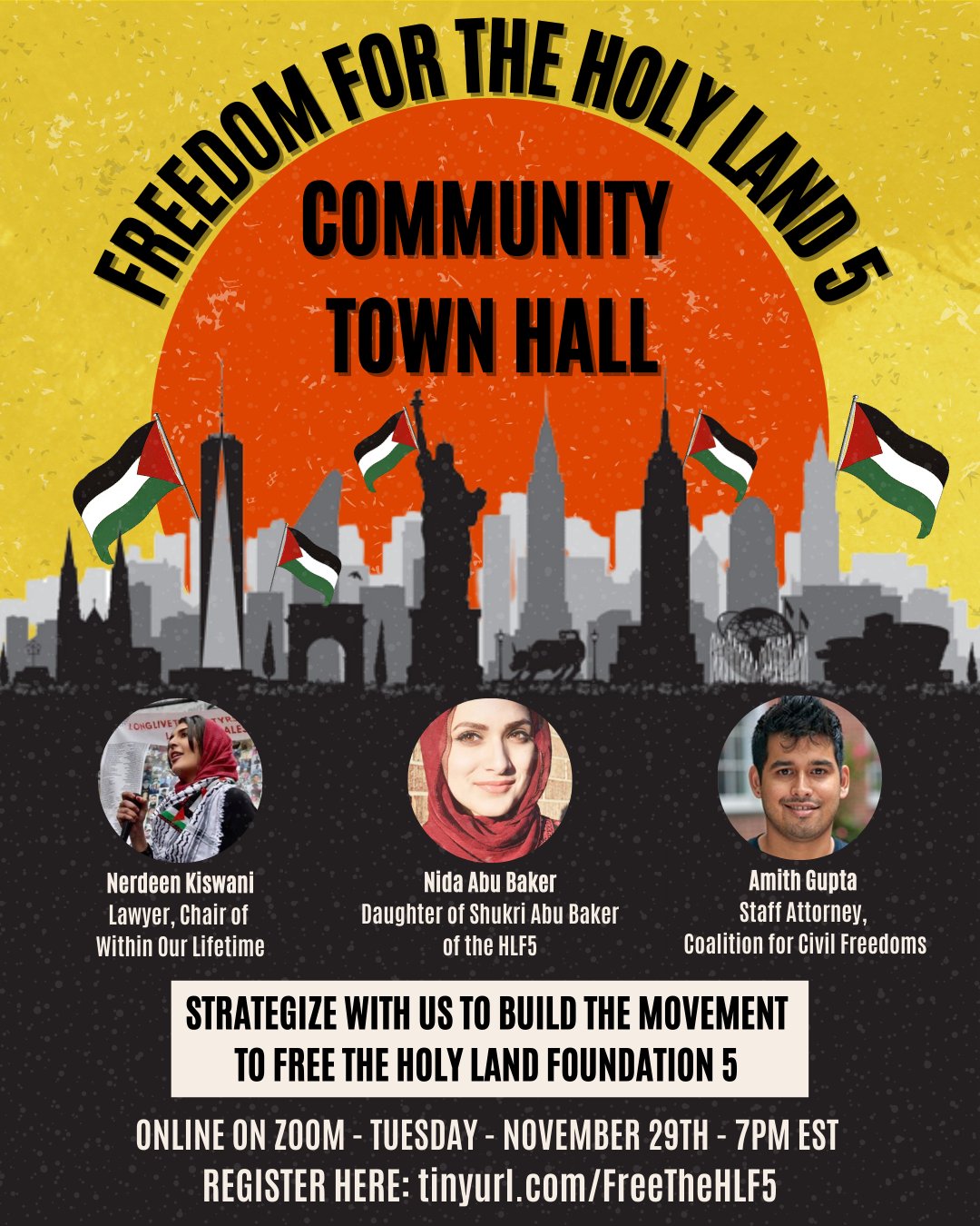 Join the Community Town Hall to discuss the campaign to Free the Holy Land Five, with speakers: