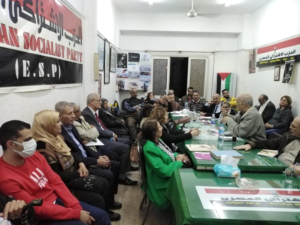 The Egyptian Socialist Party organized a commemorative event at its headquarters in Cairo, Egypt, honoring Samah Idriss as well as Amin Iskander and Sayed al-Ghadban, two Egyptian intellectuals and journalists committed to the Palestinian and Arab cause. Palestinian and Egyptian speakers discussed the importance of the movement to confront normalization on the Arab level as well as the current situation of the Palestinian cause and what can be done to build greater support and involvement in the Palestinian cause.