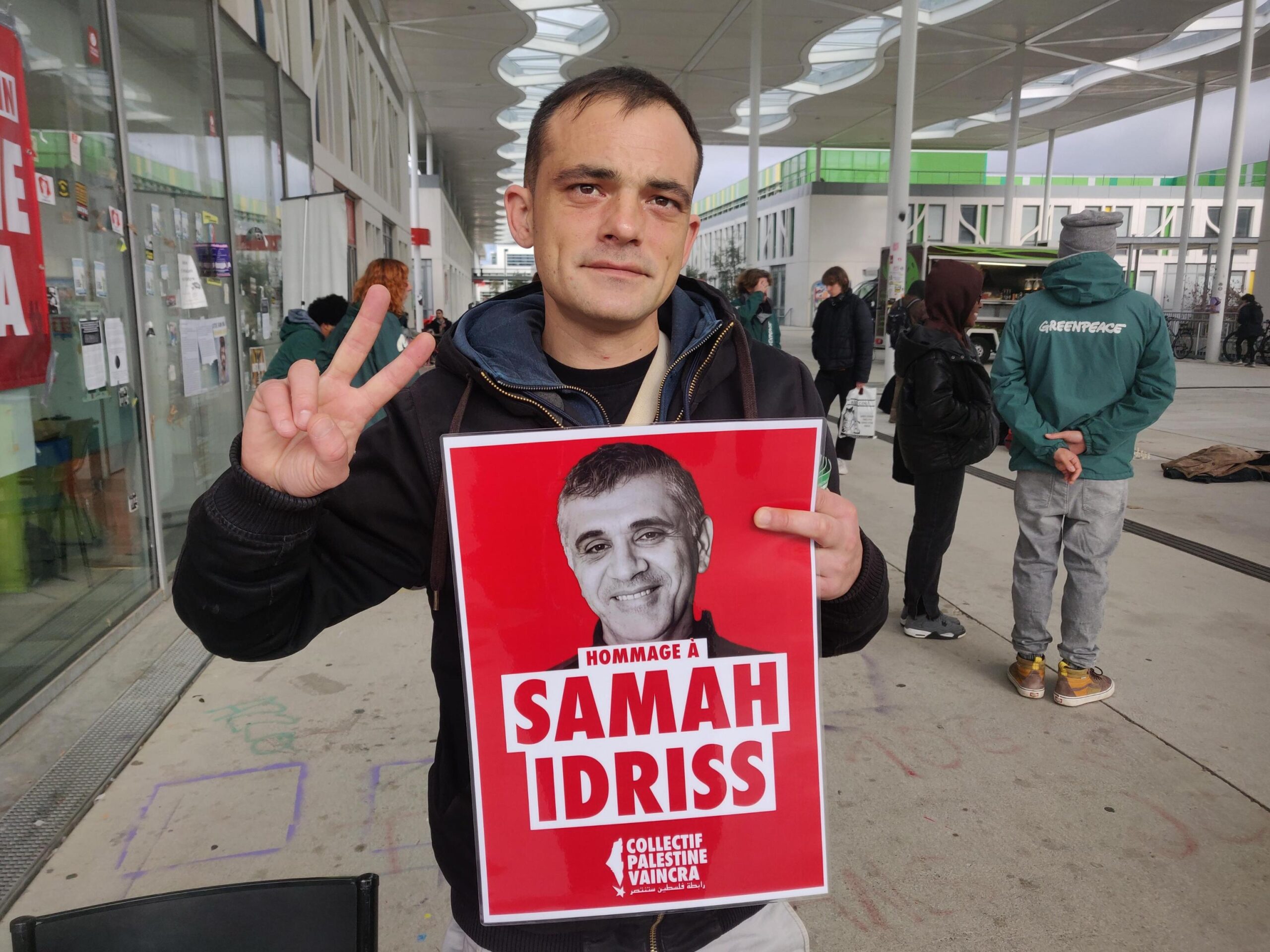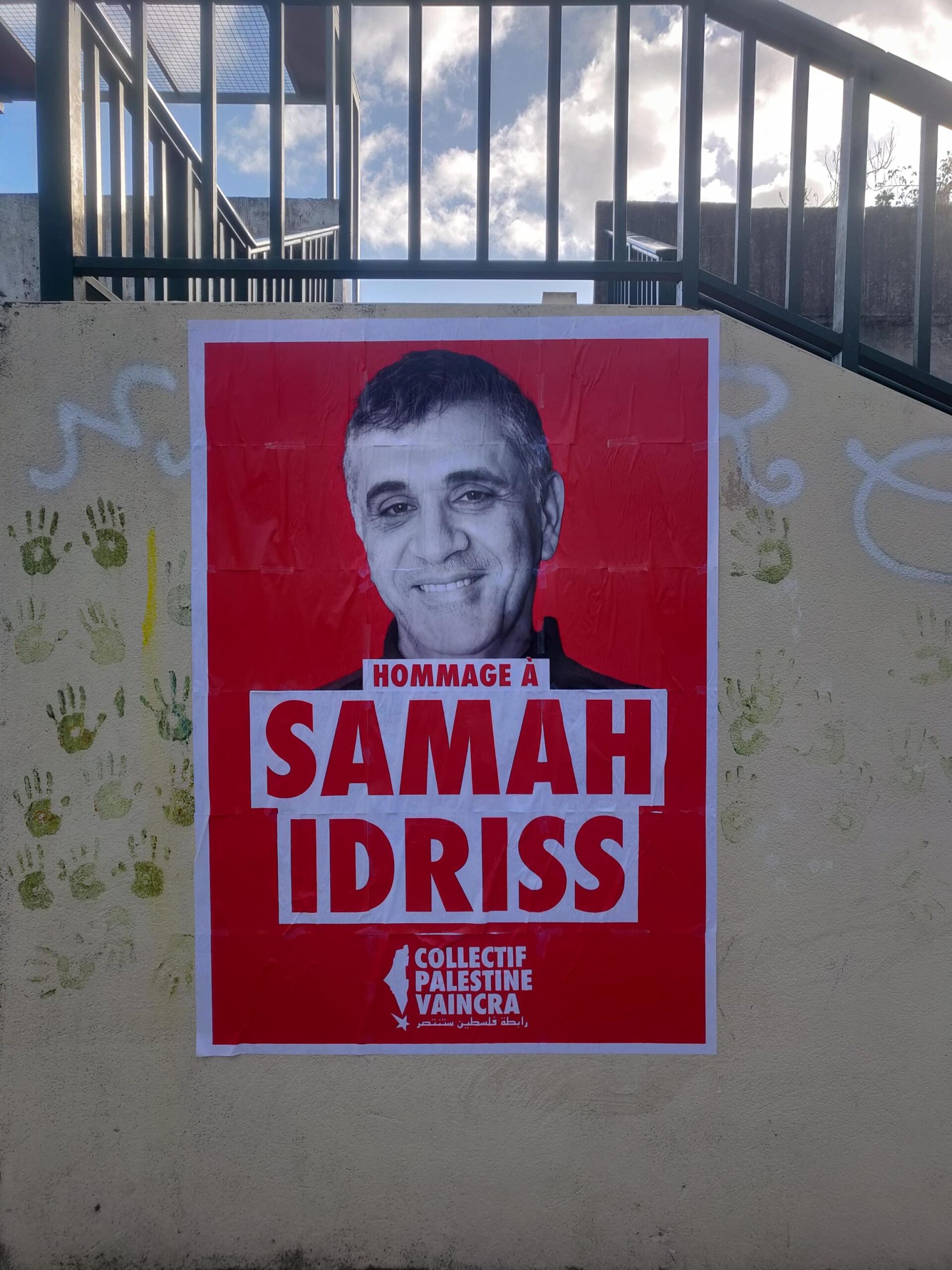 In Toulouse, France, the Collectif Palestine Vaincra included the commemoration of Samah Idriss in its Palestine Stand on #PalestineDay, 29 November, the International Day of Solidarity with the Palestinian people. The Collectif posted a large sign on the streets of Toulouse in his honor, as well as taking photos of solidarity with posters honoring him.