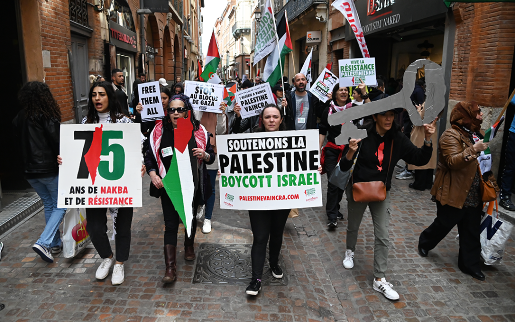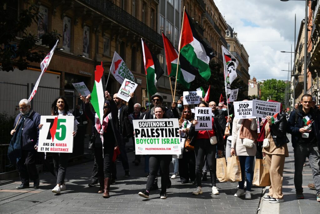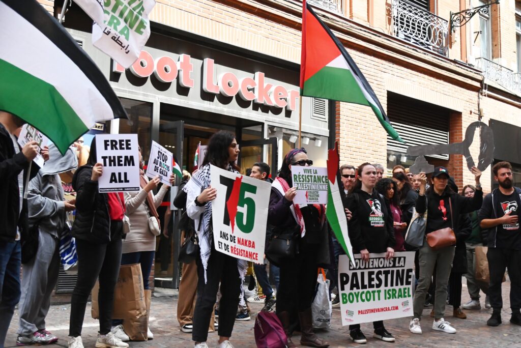 On Saturday, 13 May, crowds of people gathered in Toulouse, France at the Jeanne d’Arc metro station for a Palestine Tour organized by the Collectif Palestine Vaincra, a member organization of the Samidoun Network. The Tour commemorated the 75th anniversary of the Nakba and affirmed our support for the Palestinian resistance as the Israeli occupation army continued to bombard Gaza.