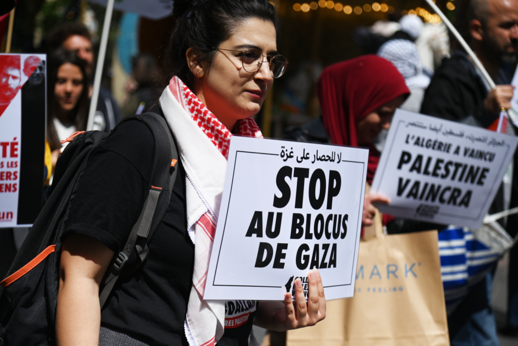 Arriving in front of the Primark store, participants expressed their solidarity with Gaza as an activist spoke, stressing that “as we speak, the Zionist occupation is continuing a new military offensive against the Gaza Strip, which has been under blockade for over 15 years. Faced with this attack, the Palestinian people have responded in a unified and collective manner to the aggression with their legitimate right to resistance!” Finally, she concluded her speech by paying tribute to the 33 martyrs who were murdered during the 5 days of this attack.