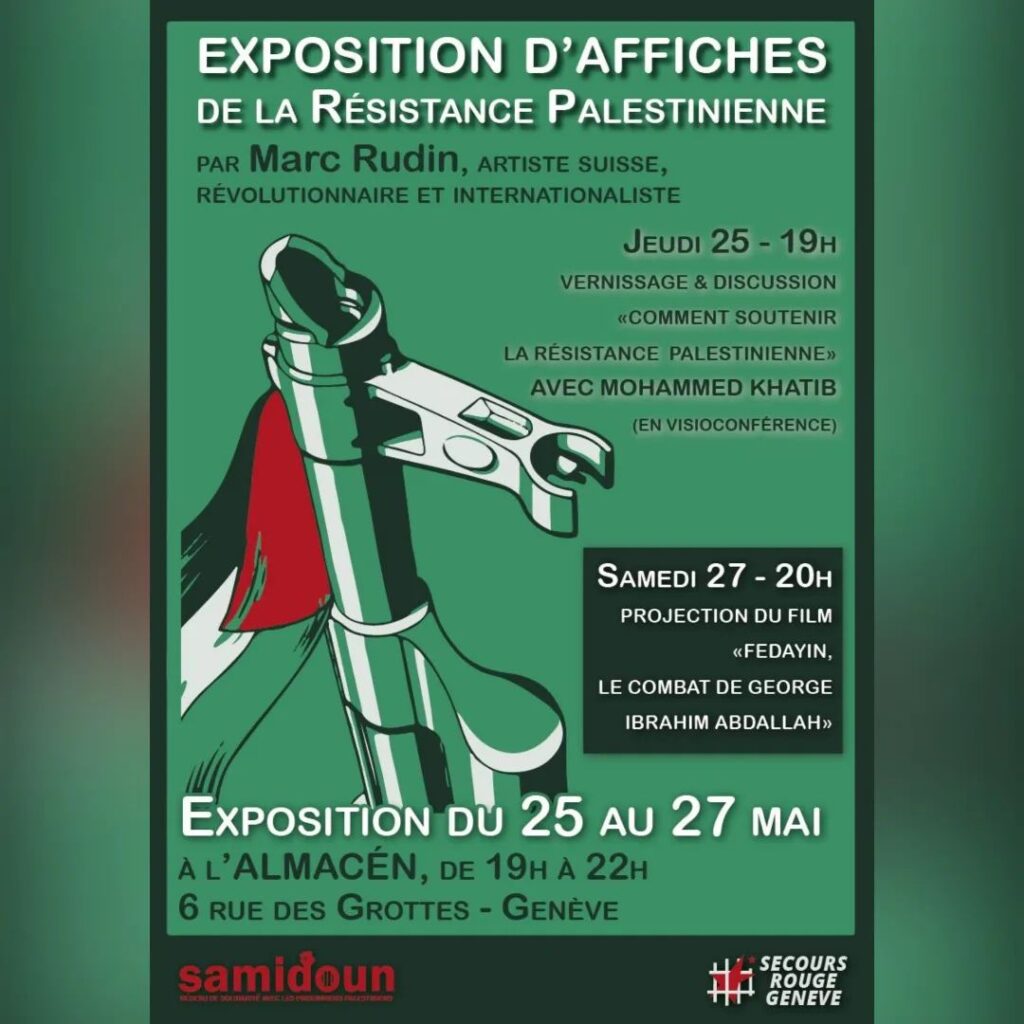 In Geneva itself, Secours Rouge, together with Samidoun and other organizations will organize an exhibition of Marc Rudin’s work from 25 to 27 May at L’Almacen, 6 rue des Grottes in Geneva.
