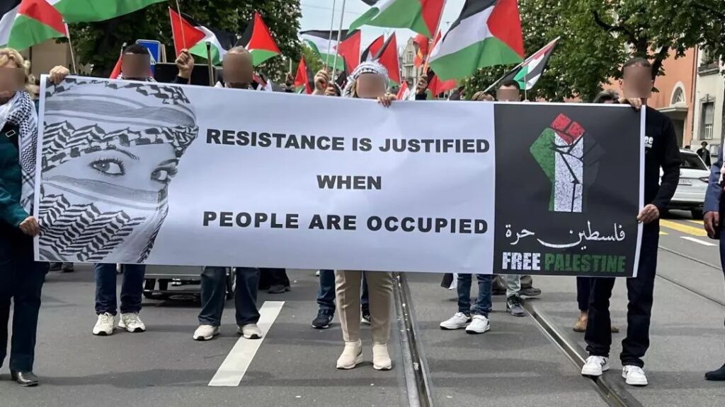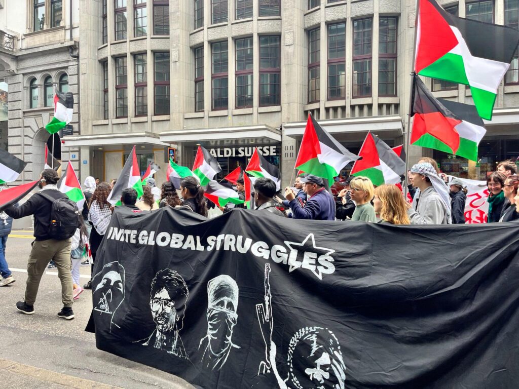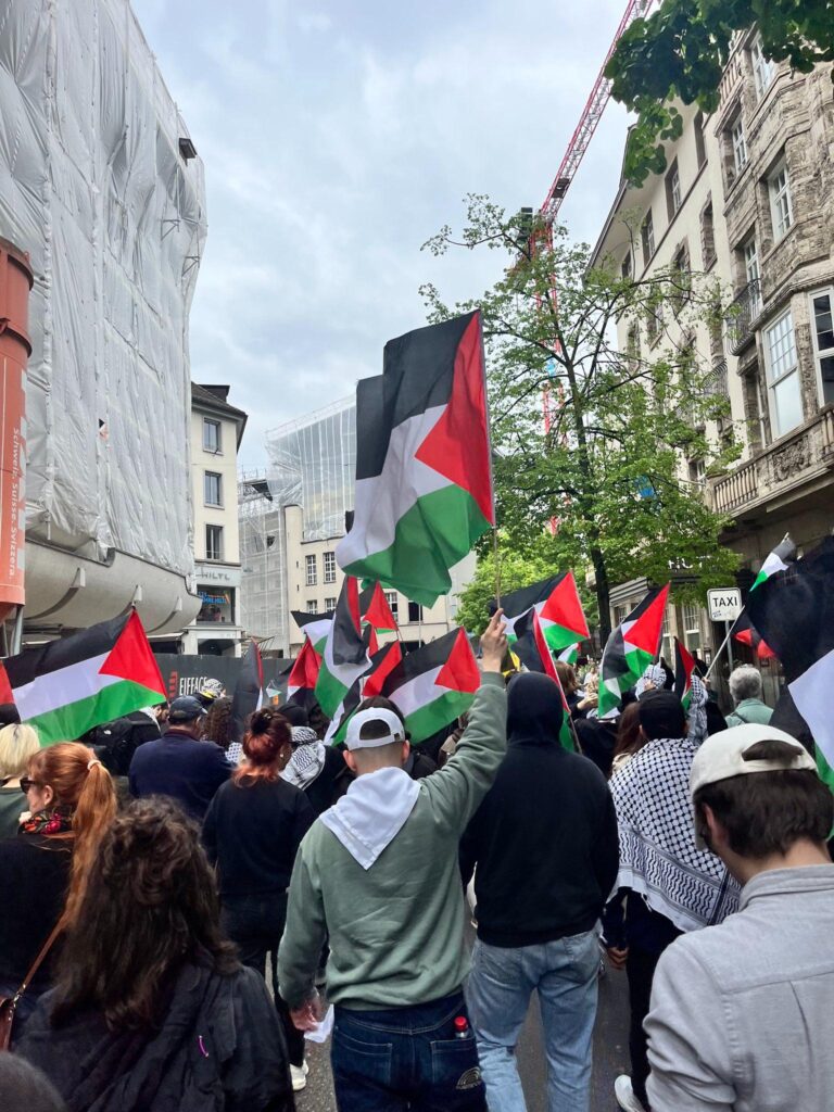 On Saturday, 20 May, crowds in Zurich rallied at Ni-Una-Menos Platz or Helvetiaplatz before marching through the city. The march, organized by the Zurich Palestine Committee, was strong and unified, involving Kurdish, Tamil and other internationalist organizers alongside Palestinian and solidarity activists. “From the river to the sea, Palestine will be free!” rang out through the streets of Zurich, accompanied by a strong call to “Boycott Israel!”