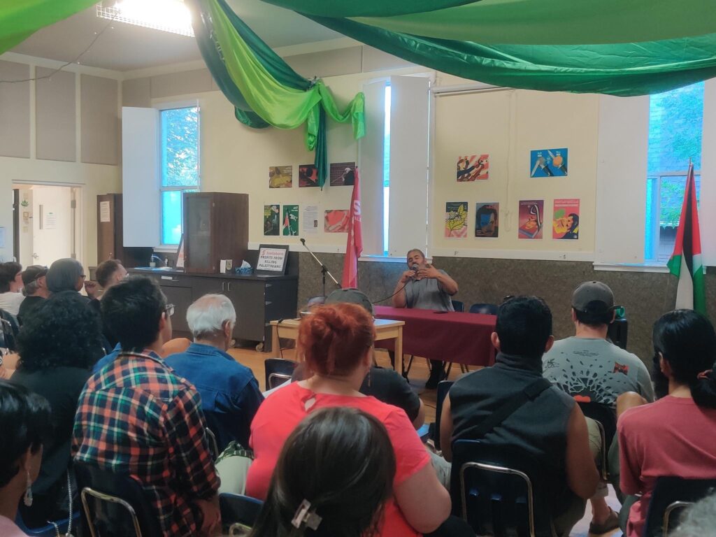 The event was opened by Matthew of Samidoun Vancouver, who highlighted the importance of solidarity with Indigenous sovereignty, self-determination and liberation, from Turtle Island to Palestine, while presenting the overview of the evening’s discussions. This was followed by a presentation by Nadia, a Palestinian activist with Samidoun, who delivered an informative presentation about the Ottawa conference of the Masar Badil, the Palestinian Alternative Revolutionary Path Movement, in April-May 2023.