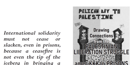 The following article is republished from Monsour Owolabi, a New Afrikan prisoner being held in Texas, which has been laid out into a zine for easy republishing. “International solidarity must not cease or slacken, even in prisons, because a ceasefire is not even the tip of the iceberg in bringing a solution to this conflict.” … Continue reading Pelican Bay to Palestine: Drawing Connections by Monsour Owolabi