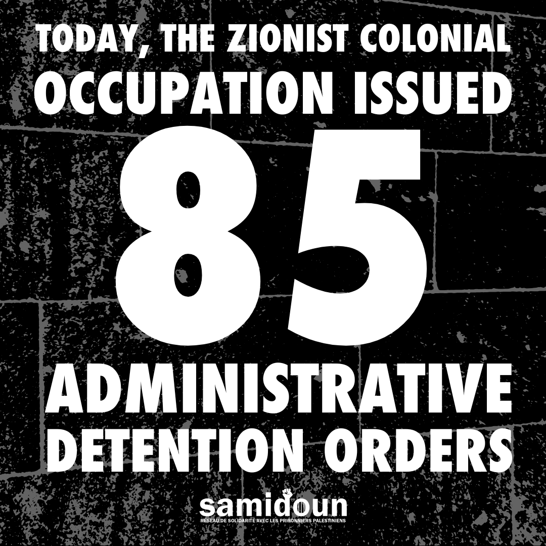 Zionist occupation orders 85 Palestinians to detention without charge or trial