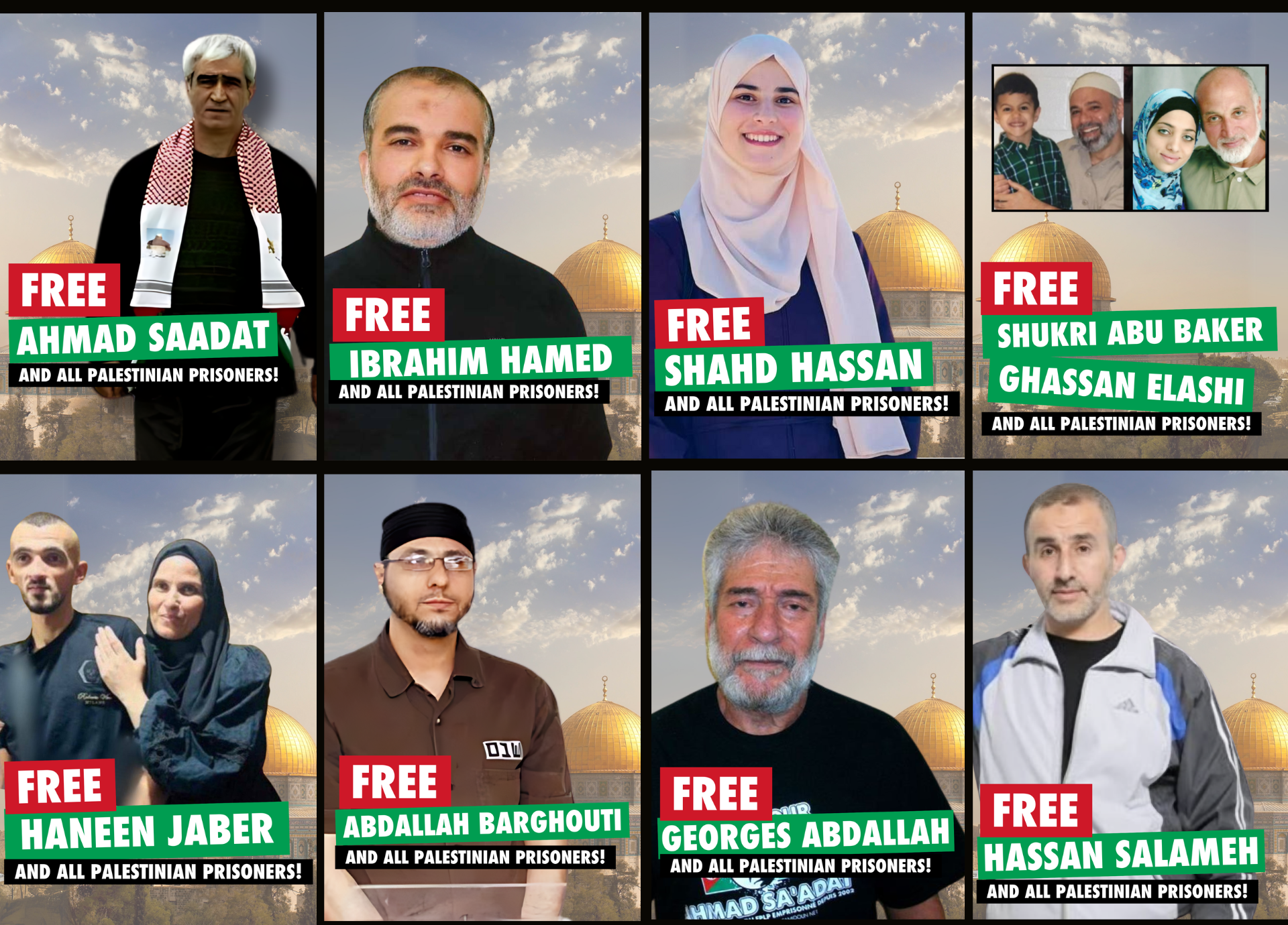 They feature many of the leaders of the prisoners’ movement and the Palestinian resistance, including Marwan Barghouti, Ahmad Sa’adat, Abdullah Barghouti, Ibrahim Hamed, Abbas al-Sayyed, Hassan Salameh, Bassam al-Saadi, Mahmoud al-Ardah, Bassem Khandakji; imprisoned healthcare workers like Dr. Hussam Abu Safiyeh; child prisoners like Ayham Salameh; administrative detainees like Raja Eghbarieh; prisoners of the Palestinian Authority like Musaab Shtayyeh; and women prisoners like Shatila Abu Ayada, Aya Khatib, Ruba Dar Nasser and Haneen Jaber, as well as prisoners of the Palestinian cause in imperialist jails like Georges Abdallah, the Filton 18, Anan Yaeesh, and Ghassan Elashi and Shukri Abu Baker of the Holy Land Five.