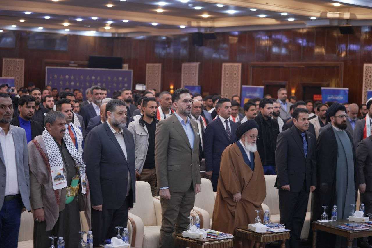 Among others, the conference was attended by the representative of Imam Khamenei, His Eminence Ayatollah Sayyed Mujtaba al-Husseini; Dr. Osama Hamdan, a leader in Hamas, Islamic Resistance Movement; Dr. Taher al-Nunu, media advisor to the head of the Hamas political bureau; and Qasim al-Araji, the Iraqi national security advisor. Several other official and diplomatic figures were also present, including the ambassador of the Bolivarian Republic of Venezuela, as well as media figures, intellectuals, and youth representatives from various Iraqi provinces. Researchers and academics from Canada, Lebanon, Morocco, Yemen, Jordan, Palestine, and Iraq also participated in the conference.