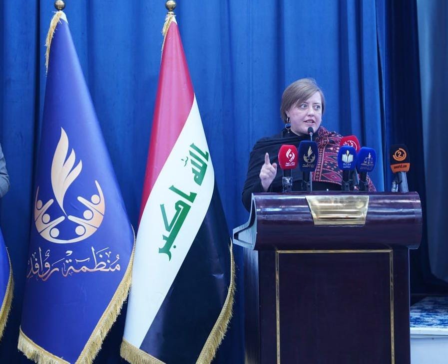 Samidoun Palestinian Prisoner Solidarity Network participated in the Rawafed al-Afnan Cultural Organization’s fourth annual scientific conference in Baghdad, Iraq, on 20 December 2025, under the slogan “Al-Aqsa Flood: Remembrance and Continuation.” Samidoun’s international coordinator, Charlotte Kates, presented a paper at the conference, which was widely attended by religious scholars, academics, political figures and media representatives from Iraq, the broader Arab region and internationally.