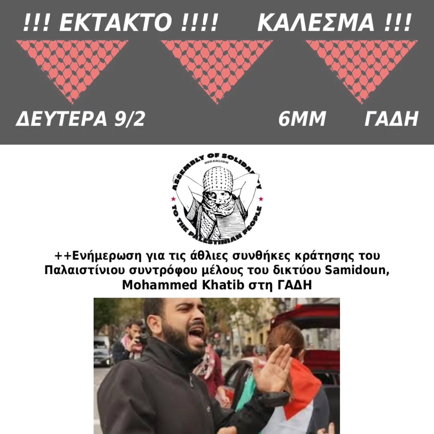 Update on the awful detention circumstances of our Palestinian comrade Mohammed Khatib from the Samidoun network, in Heraklion Crete !!!