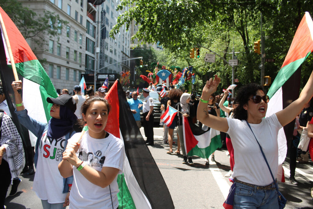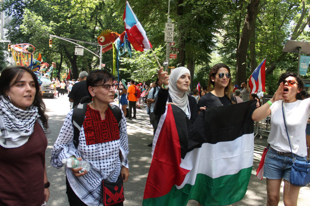 Palestinians and supporters of Palestine marched in New York City on Sunday, 11 June as part of the Puerto Rican Day Parade, celebrating the release of long-time Puerto Rican political prisoner Oscar López Rivera from U.S. jails and supporting the Puerto Rican people’s struggle.