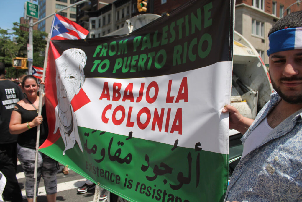On 11 June, activists from a number of organizations, including the US Palestinian Community Network, NYC Students for Justice in Palestine, Al-Awda NY, Samidoun Palestinian Prisoner Solidarity Network, Palestinian Youth Movement and Existence is Resistance joined the contingent or other participation points in the Puerto Rican Day parade, supporting the Puerto Rican struggle and expressing their warm welcome to López Rivera. Joe Catron of Samidoun participated in the contingent, which carried Palestinian and Puerto Rican flags and chanted for liberation from colonialism from Puerto Rico to Palestine.