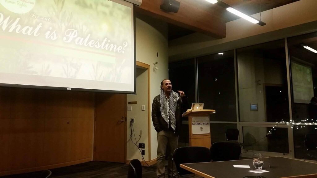 وتحدث خليل منصور الناشط في اوساط الجالية الفلسطينية بمدينة فانكوفر حول مركزية حق العودة في النضال الوطني الفلسطيني من خلال سرد قصص من النكبة الفلسطينية وتجارب شخصية ومن الواقع الحي مؤكدا على ان تمسك الشعب الفلسطيني بحقه في العودة مهما طال او تقادم الزمن ، باعتباره جوهر نضال وقضية الفلسطينيين.