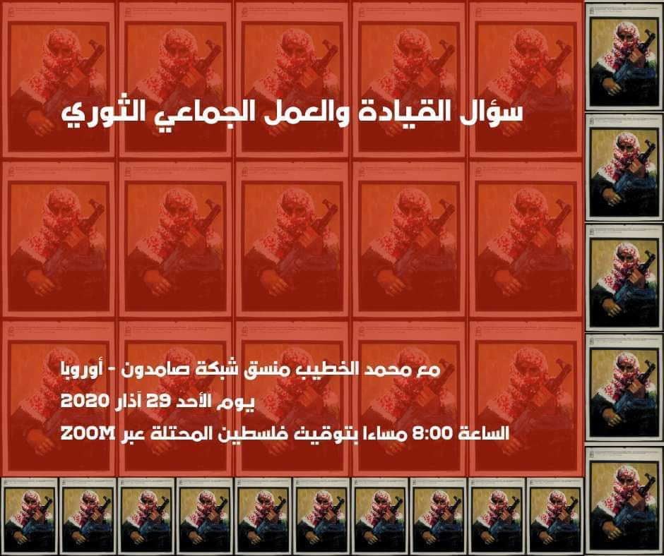 ولننتقل من النظري إلى العملي ستكون محطتنا التالية بعنوان “سؤال القيادة والعمل الجماعي الثوري”. يقدمها محمد الخطيب منسق شبكة صامدون- أوروبا. وذلك يوم الاحد 29 آذار / مارس الساعة الثامنة 8:00 مساءً بتوقيت القدس المحتلة، عبر المنصة الإلكترونية Zoom