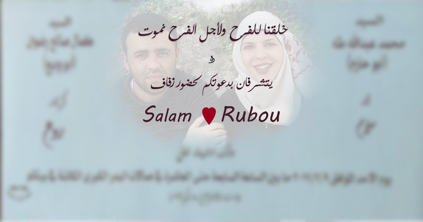 مع كل المعاناة التي أعيشها لوحدي مع كنعان، وكل القرارات التي عليّ اتخاذها كأمٍ وأب في آن واحد، أعود لأتذكر ما أصرّينا على عنونته في كرت زفافنا. “خلقنا للفرح ومن أجل الفرح نموت”.. هذا إيماننا، وهذه عقيدتنا التي نحيا بها، وسنربّي أطفالنا للاقتفاء بها.