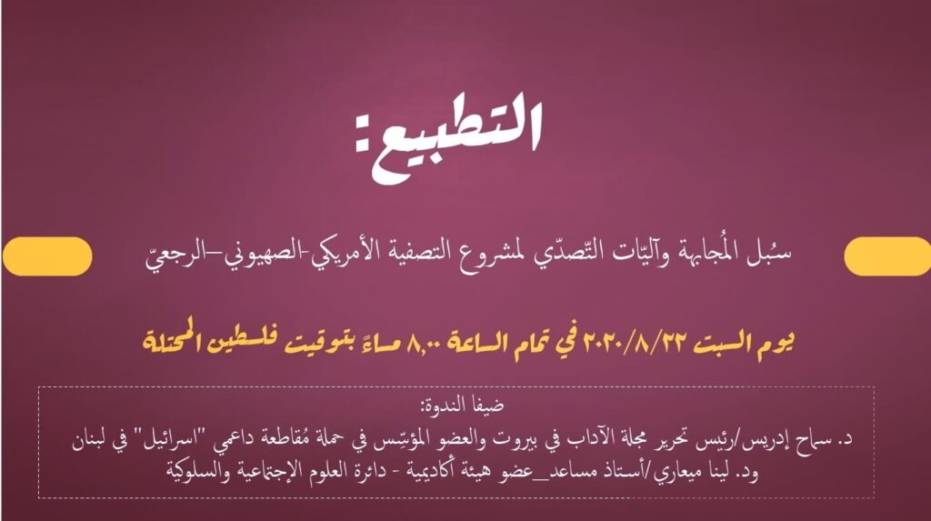 التطبيع : سُبل المُجابهة وآليّات التّصدّي لمشروع التصفية الأمريكي – الصهيوني – الرجعيّ.