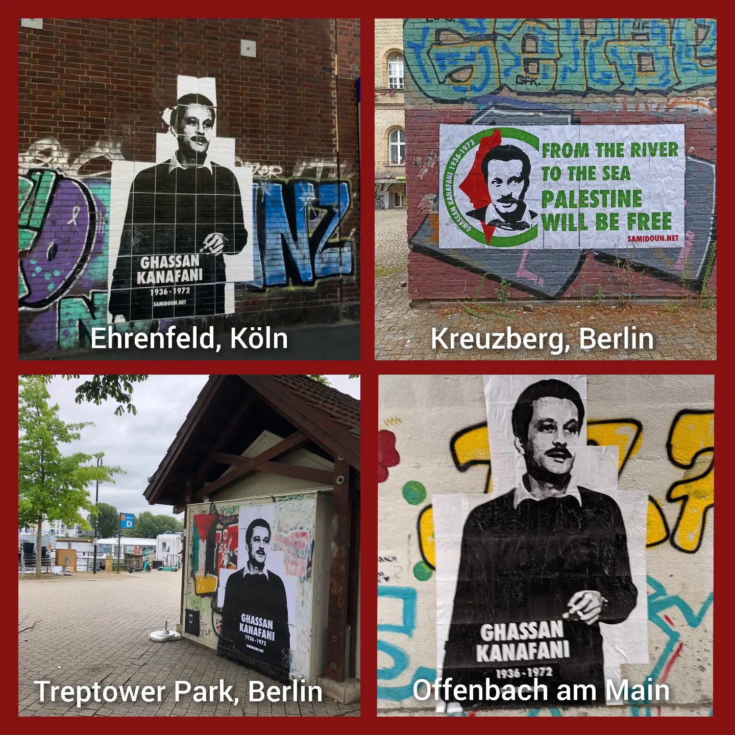 تواصل فروع شَبكة صامدون في عدد من المدن والعواصم العالمية تنفيذ وتصميم جداريات خاصّة بالأديب الشهيد غسّان كنفاني شَملت أحياء وشوارع في أمستردام، تولوز، باريس، برلين، كولون، دوزيلدورف، كما جرى تعليق جدارية خاصّة للمرة الثانية في مدينة فانكوفر الكندية التي شهدت مهرجاناً سياسياً وثقافياً خاصاً يوم الثامن من تموز (يوليو) الجاري.