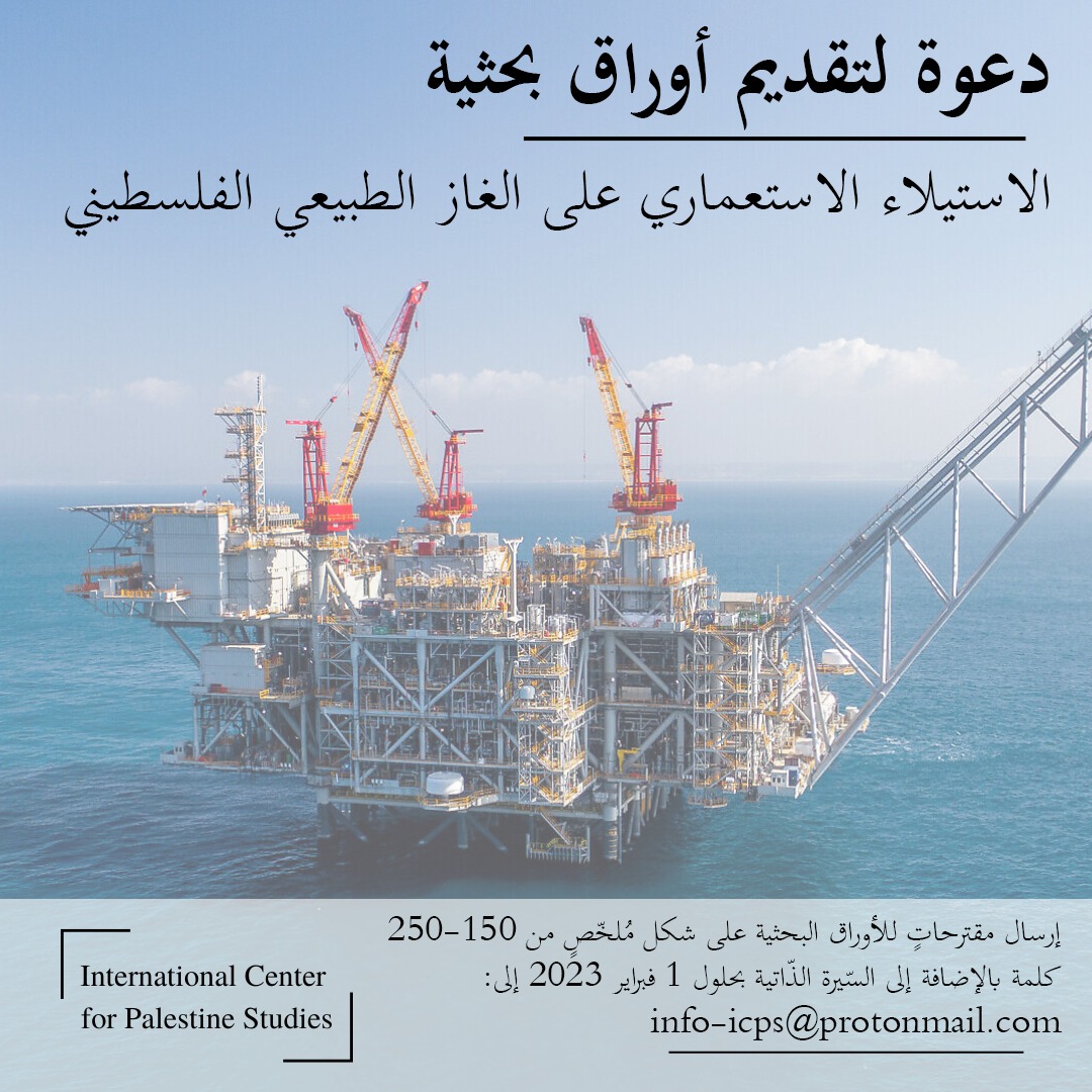 سيجري المركز الدولي للدراسات الفلسطينية ICPS بحثًا شاملاً عن السرقة الاستعمارية للغاز الطبيعي الفلسطيني من قبل الكيان الاستعماري الاستيطاني الصهيوني. بهدف تعميق فهمنا الجماعي حول قضية الغاز الطبيعي في فلسطين وآثارها السياسية والاقتصادية وسيتم نشره من قبل مركز الدراسات في خريف عام 2023.