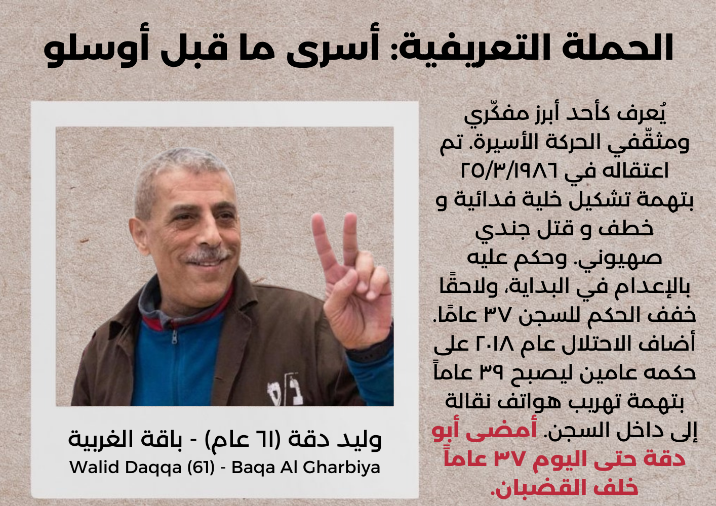 الأسير وليد دقة (٦١ عام) من باقة الغربية في الأراضي المحتلة عام ١٩٤٨
