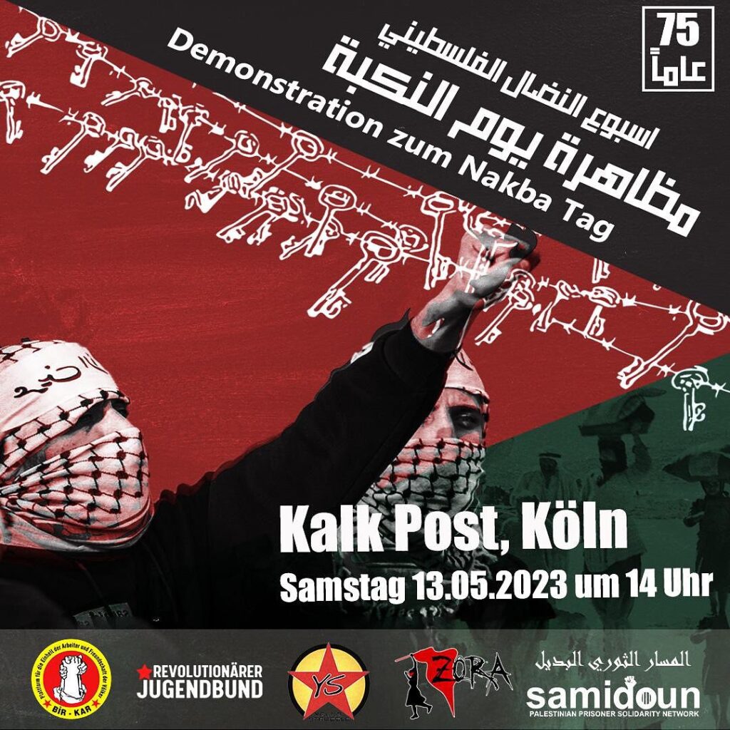 تحت شعار “في مواجهة النكبة المستمرة” دَعَت “حركة المسار الثوري البديل” و “شبكة صامدون للدفاع عن الأسرى” وعدد من المنظمات والقوى التضامنية في ألمانيا إلى مظاهرة شعبية في مدينة كولن الألمانية السبت 13 أيار مايو الجاري