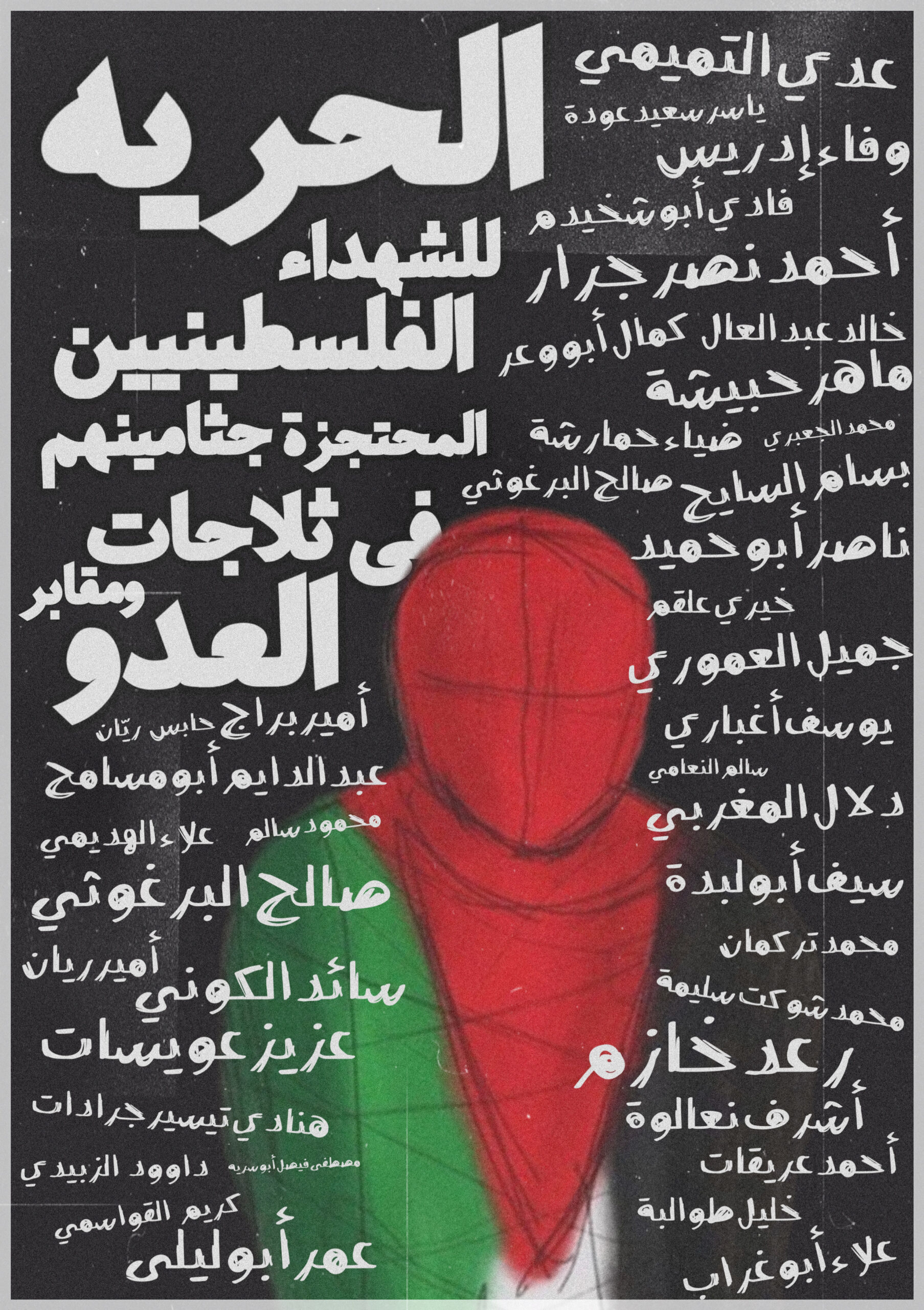وقالت اللجنة في بيان بمناسبة “اليوم الوطني لاسترداد جثامين الشهداء المحتجزة” الذي يوافق 27 أغسطس/آب من كل عام: “نقف وإياكم في هذا اليوم لنُعلي معكم صوتنا الفلسطيني المُوحَّد والمُقاوِم والمُطالِب باسترداد جثامين شهدائنا الأبرار وشهيداتنا الماجدات المحتجزة فيما تسمى “مقابر الأرقام ” وثلاجات القتل الاستعمارية الإسرائيلية”