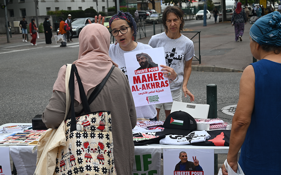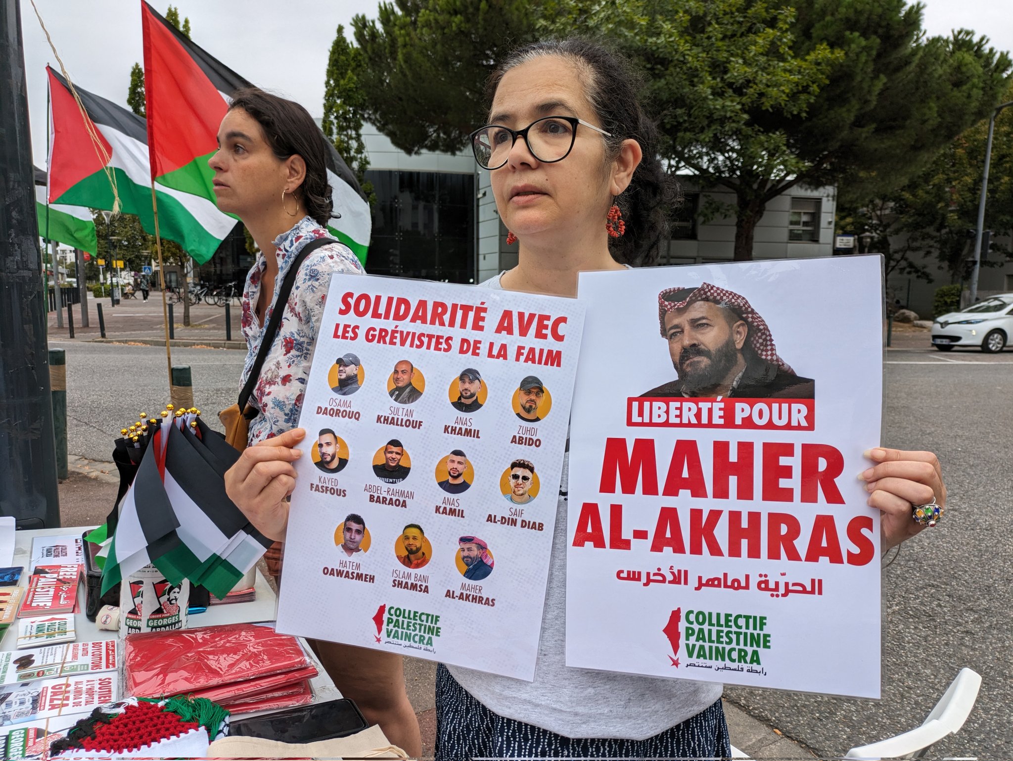 نظّمت رابطة “فلسطين ستنتصر” عضو “شبكة صامدون للدفاع عن الأسرى الفلسطينيين” فعالية تضامنية اليوم السبت تضامناً مع مقاومة الحركة الأسيرة الفلسطينية في سجون الاحتلال، حيث جرى وضع “طاولات إعلامية” وسط “سوق باجتيل الشعبي” بمدينة تولوز الفرنسية، وقام أعضاء الرابطة بتوزيع منشورات تعريفية، رافعين يافطات التضامن مع الشعب الفلسطيني، وصور القادة ” وليد دقة” و “ماهر الأخرس” و”أحمد سعدات” والأسرى المضربين عن الطعام في سجون الاحتلال