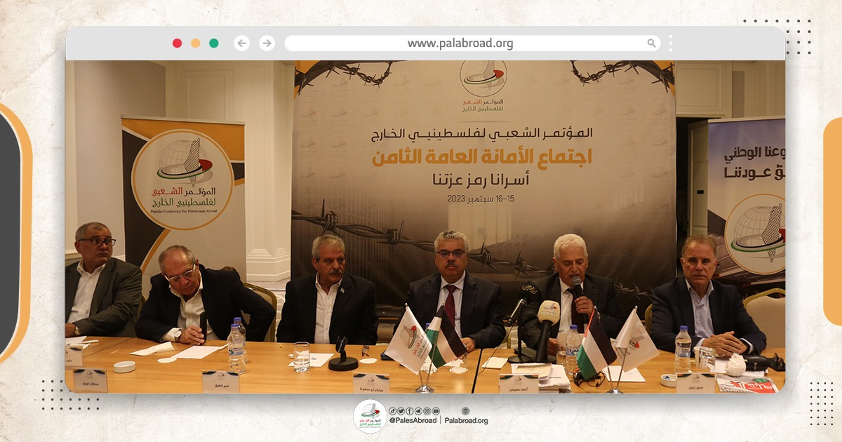 جاء ذلك خلال اجتماع الأمانة العامة الثامن للمؤتمر الشعبي لفلسطينيي الخارج، اليوم الجمعة 15-9-2023، بمدينة اسطنبول في تركيا، تحت عنوان “أسرانا رمز عزتنا”