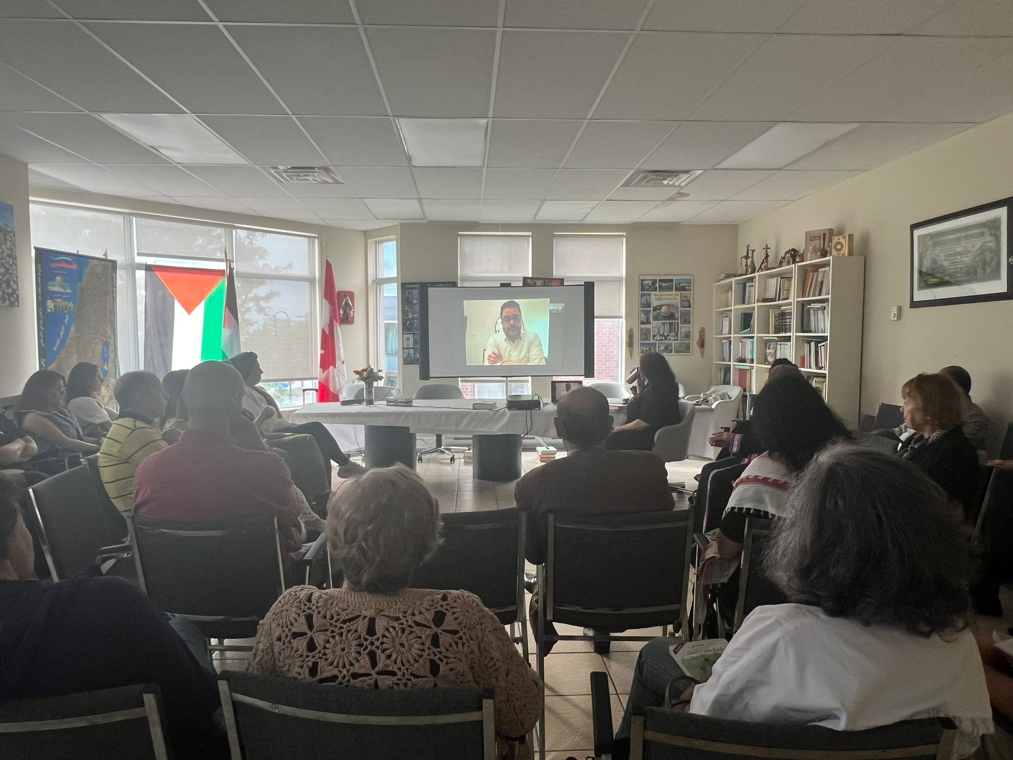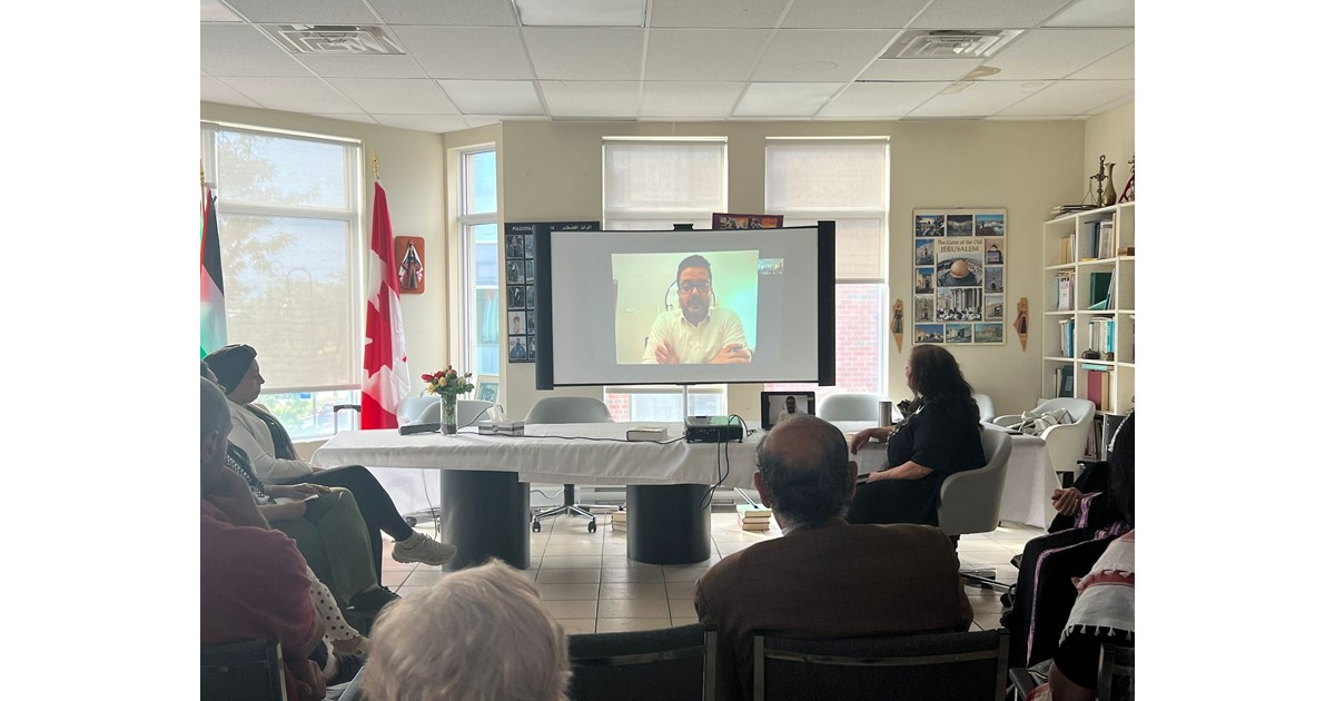 يجتاز حدود سجنه، فيكتب مقالة ثم بحثًا ثم شعرًا ثم رواية، رواية يجب عنونتها بصوت الأرض الموجوعة، صوت قادم من جحيم الأسر؛ كيف لأسير بعد عشرين عامًا من أسره أن يكتب بهذه البراعة التجريبية وبناء الشخصيات وبذاكرة الأماكن، وبهذا الاسترسال الفكري والتاريخي والسرد النفسي المتعدّد الطبقات، وهو يدرك أنه محكوم عليه بالسجن مدى الحياة لثلاث مرات، أي أنه لن يرى نابلس مكان ولادته مرة أخرى ولا القدس ولا مخيّمه من جديد. بأي قلب يكتب هذا الأسير الذي يعلّمنا جميعًا كيف يجب أن تمرّ حياتنا.. الأديب والأسير باسم خندقجي وروايته “قناع بلون السماء” (دار الآداب، 2023) الفائزة بجائزة بوكر العربية لعام 2024، كانت محور لقاء عُقد في مقرّ المؤسسة الكندية الفلسطينية في مونتريال يوم أمس الأحد في 23 حزيران/ يونيو 2024 دعت إليه الكاتبة هناء الرملي ضمن لقاءات “نادي الكتاب- 13 تحت الشمس” وكان ضيف اللقاء يوسف خندقجي، شقيق باسم خندقجي عبر منصة الزووم. وقد حضر اللقاء نخبة من المثقفين والمهتمين بالأدب في مونتريال.