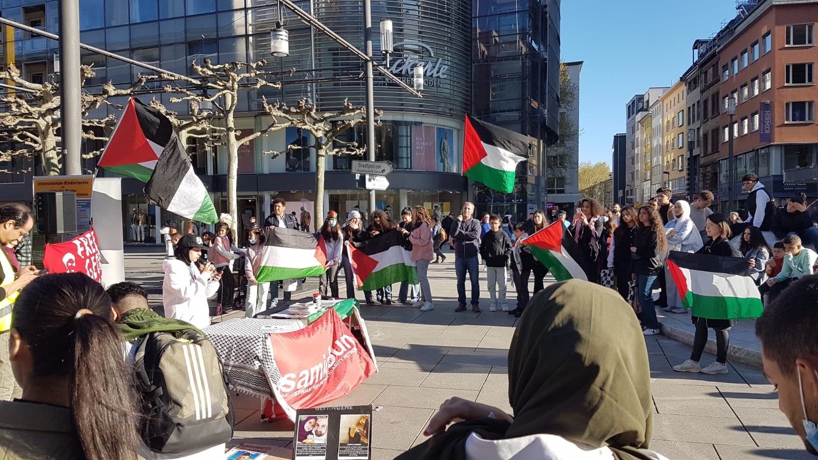 Am internationalen Tag der palästinensischen Gefangenen, hat Samidoun Palestinian Solidarity Network mit der Kommunistischen Organisation, Free Palestine Maastricht, Free Palestine FFM und Stop Child Detention Kundgebungen in Aachen und Frankfurt organisiert in Solidarität mit dem Widerstand der palästinensischen Gefangenen hinter Gittern.