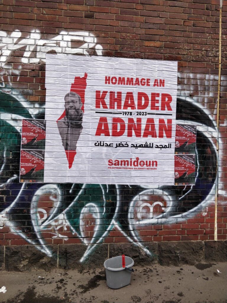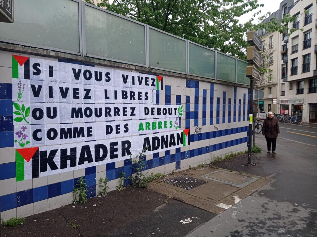 In der Zwischenzeit hat Samidoun Paris Banlieue in den Straßen von Paris, mehrere visuelle Darstellungen in der ganzen Stadt geschaffen, die den Fall von Khader Adnan hervorheben und weiterhin die Freilassung aller 4.900 Palästinenser fordern, die hinter den Gittern der Besatzung sitzen.