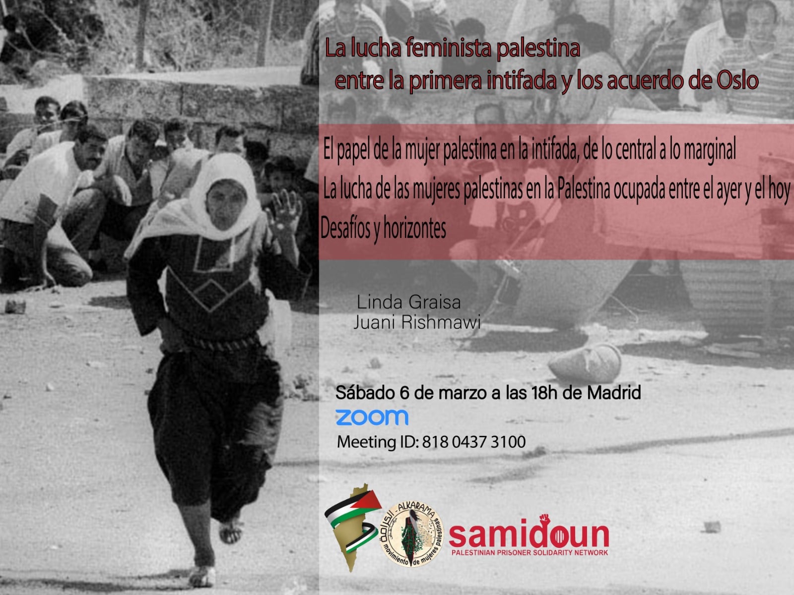 Esta charla la organizamos Alkarama con la colaboración de Samidoun y Masar Badil (la Ruta Palestina Alternativa)