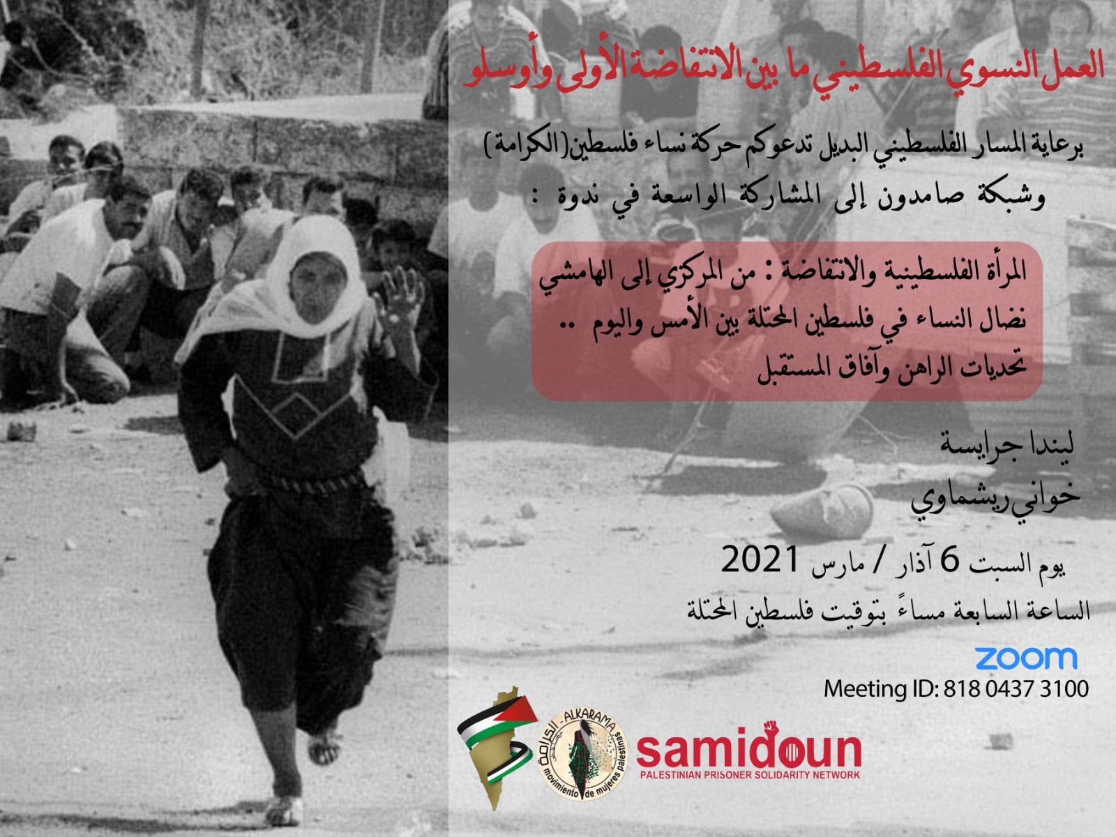 برعاية المسار الفلسطيني البديل تدعوكم حركة نساء فلسطين (الكرامة)