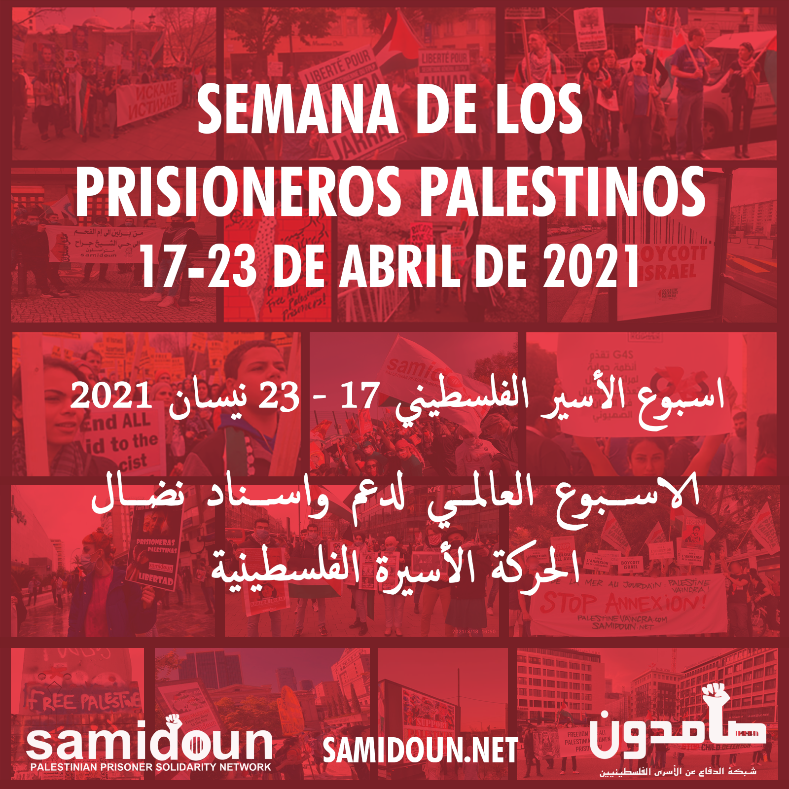 Nosotros, la Red de Solidaridad de los Prisioneros Palestinos Samidoun en la Palestina Ocupada, lanzamos una llamada a todas las fuerzas democráticas y progresistas del mundo y a todos los amigos del pueblo palestino, movimientos de liberación, organizaciones y movimientos de solidaridad, a unirse a nosotros en este grito por los derechos y justicia. Os llamamos hoy con un grito palestino libre a la conciencia mundial para que apoyen firme y claramente la lucha del pueblo palestino y su resistencia legítima y continua hasta la victoria y la liberación.
