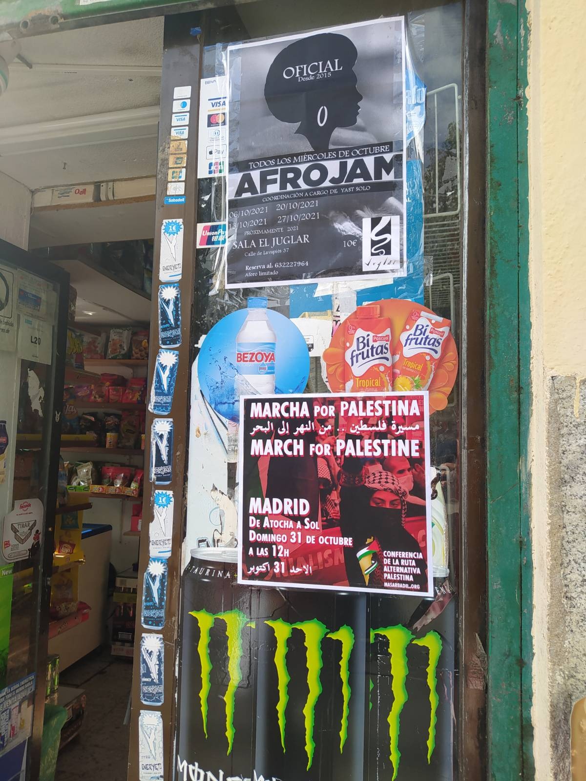 Para finalizar, Samidoun España empapeló las zonas más visibles de los barrios del centro de Madrid (Embajadores, Tirso de Molina y Lavapiés) con los carteles anunciantes de la Gran Marcha.