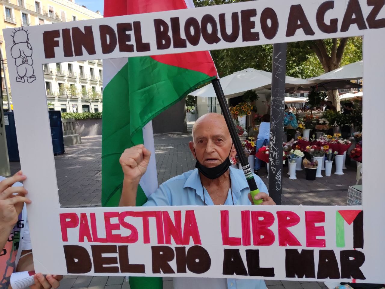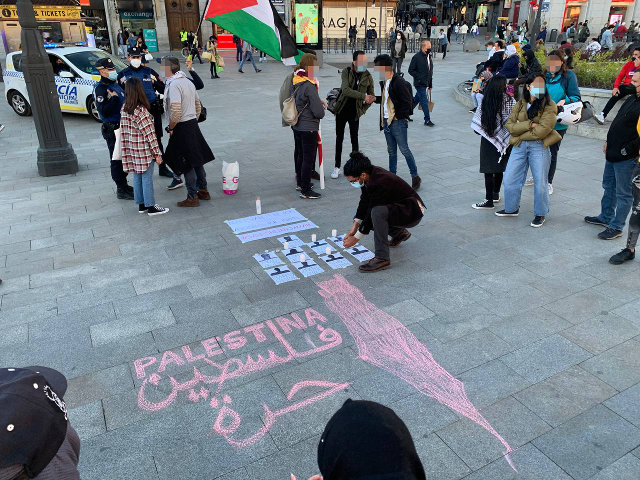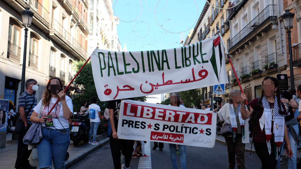 El 15 de mayo, y en medio de una oleada de manifestaciones a nivel internacional en repulsa por la agresión sionista al gueto de Gaza que asesinó mediante bombardeos aéreos a más de 250 palestinos, de los cuales más de 65 eran menores edad, así como contra las incursiones del ejército ocupante en la mezquita de Al Aqsa y el desplazamiento de las familias palestinas del barrio de Sheikh Jarrah, las activistas de Samidoun España convocaron una manifestación en Madrid que reunió a miles de personas en una de las marchas más multitudinarias de los últimos años en solidaridad con Palestina.