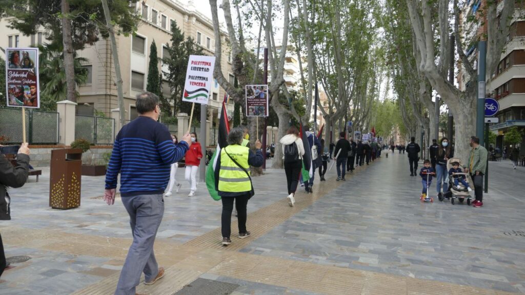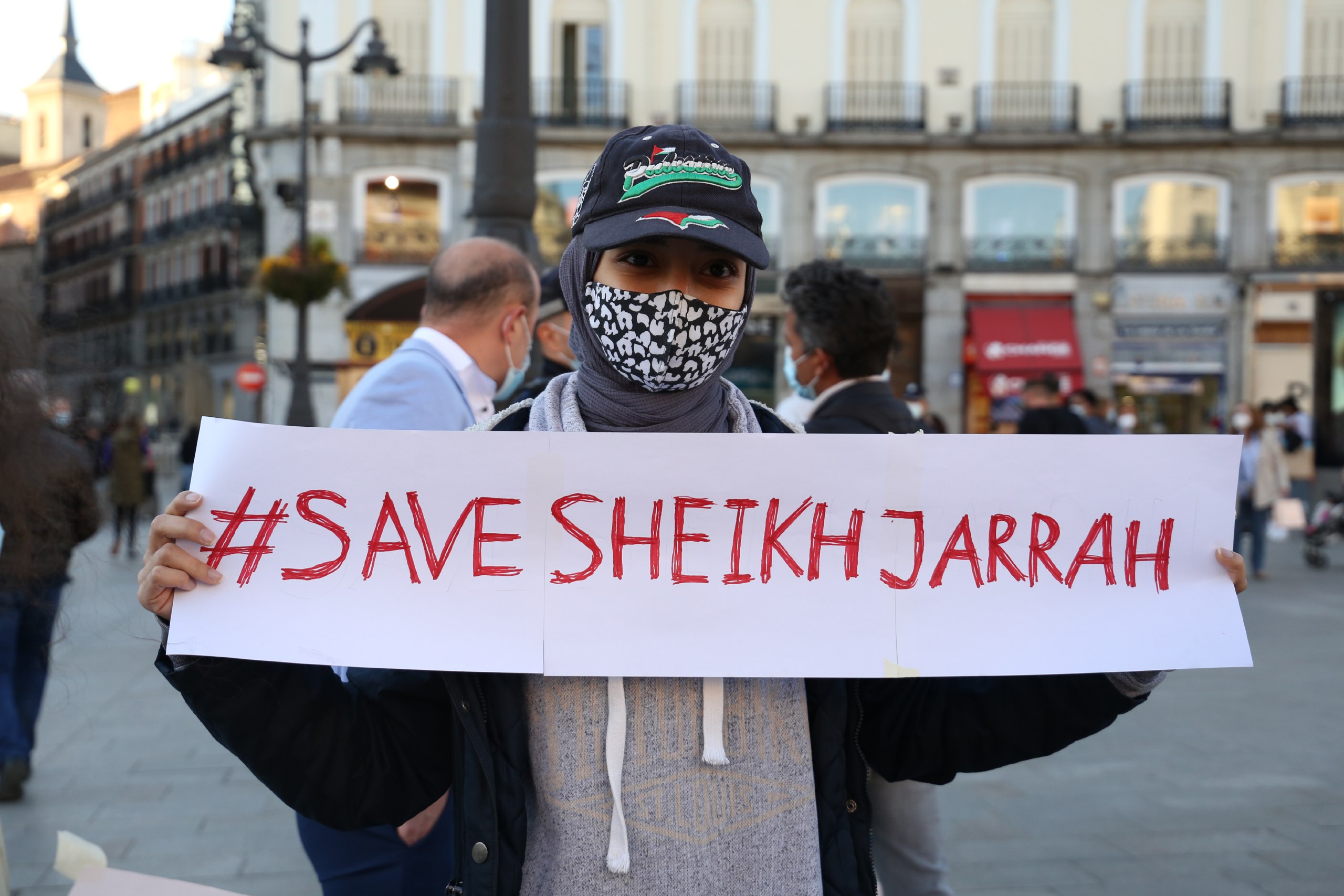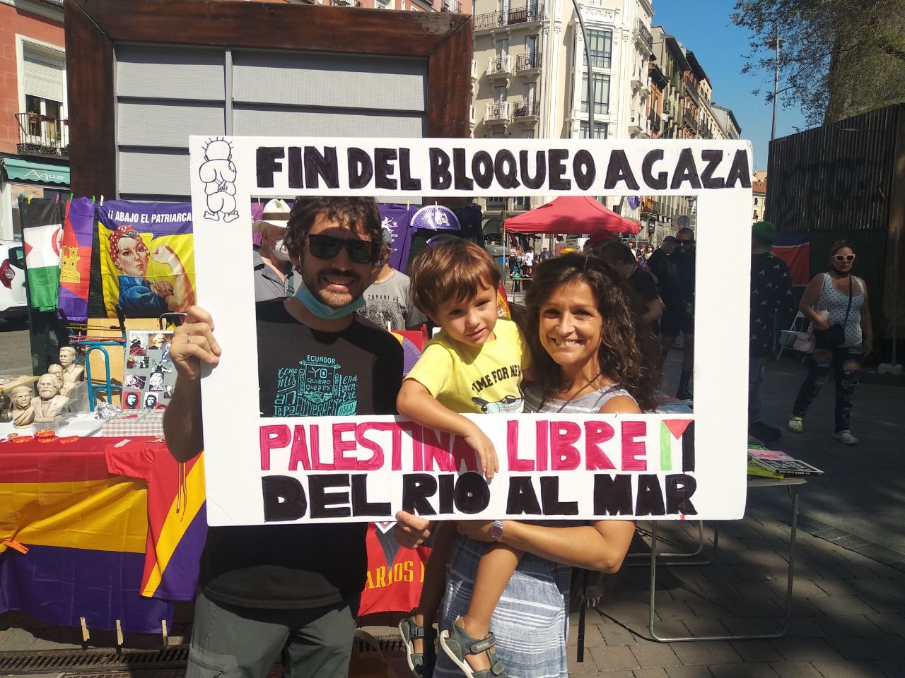 El 15 de mayo, y en medio de una oleada de manifestaciones a nivel internacional en repulsa por la agresión sionista al gueto de Gaza que asesinó mediante bombardeos aéreos a más de 250 palestinos, de los cuales más de 65 eran menores edad, así como contra las incursiones del ejército ocupante en la mezquita de Al Aqsa y el desplazamiento de las familias palestinas del barrio de Sheikh Jarrah, las activistas de Samidoun España convocaron una manifestación en Madrid que reunió a miles de personas en una de las marchas más multitudinarias de los últimos años en solidaridad con Palestina.