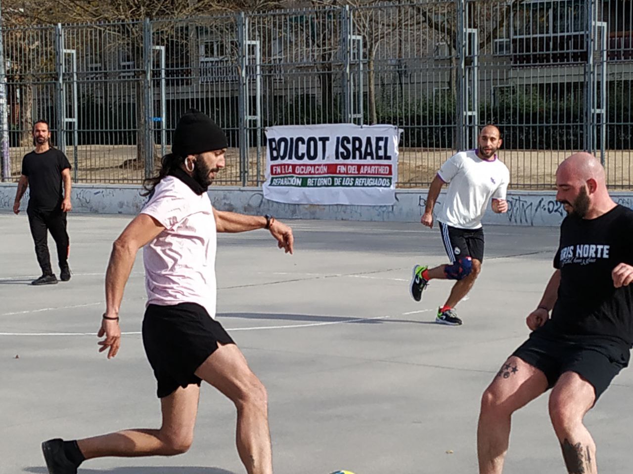 Por último, nos despedimos dejándoos esta magnífica imagen en la que aunamos el deporte, el antirracismo y… ¡el boicot a Israel! en el mundialito antirracista de Carabanchel.