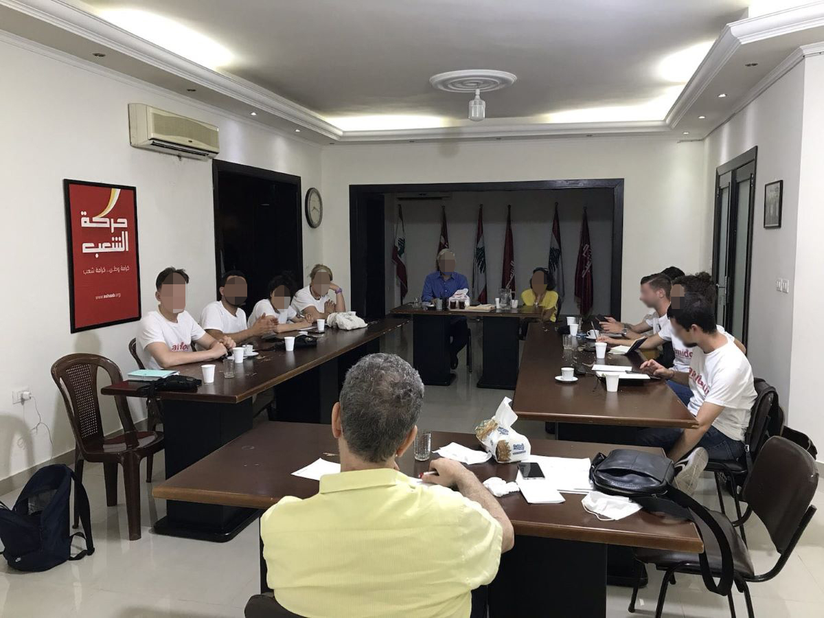 A finales de Julio de 2021 tendría lugar una de las actividades que más fortalecería la línea política y las alianzas en las que Samidoun venía trabajando. Se trata de la Brigada Ghassan Kanafani, una delegación internacional de Samidoun conformada por representantes de Holanda; España; Francia; Suecia; Líbano; Palestina, etc. La brigada viajó al Líbano para reunirse con diferentes organizaciones populares de los campos de refugiados palestinos en el Líbano, partidos políticos libaneses, movimientos de solidaridad con Palestina y muchos otros. Gracias a ella, las activistas de Samidoun y las diferentes organizaciones que nos hospedaron pudimos conocer nuestro posicionamiento político, debatir y diseñar proyectos en los que trabajar conjuntamente en el medio y largo plazo. Esto se enmarca en la conciencia que tenemos sobre la importancia de construir un frente común amplio que sobrepase la fortaleza de la alianza del enemigo.