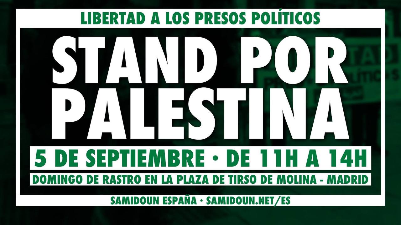 Terminando el verano, en septiembre de 2021, Samidoun organizó puestos informativos en el corazón del Domingo madrileño: el rastro. En la Plaza de Tirso de Molina, junto al resto de compañeros de la izquierda que históricamente habitan la plaza vendiendo y difundiendo diferentes materiales referentes a la historia de la resistencia española contra el fascismo, la tradición republicana y comunista; las activistas de Samidoun encontraron un hueco para informar e invitar a los transeúntes a organizarse en el movimiento internacional por Palestina y unirse a las diferentes campañas de boicot.
