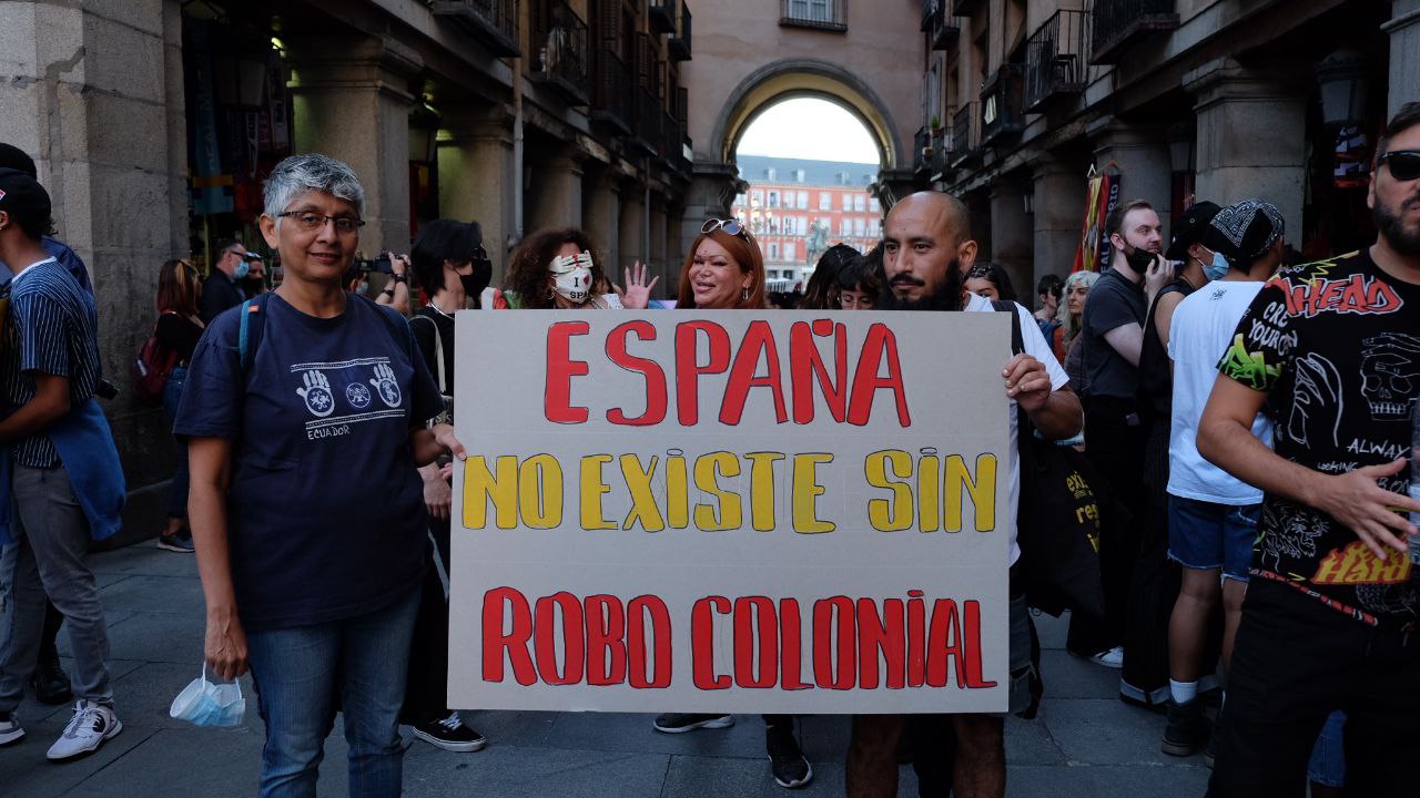 La manifestación terminó en el núcleo de Madrid, en la céntrica Plaza del Sol, donde miles de manifestantes pararon su marcha para gritar que el colonialismo israelí debía caer urgentemente.