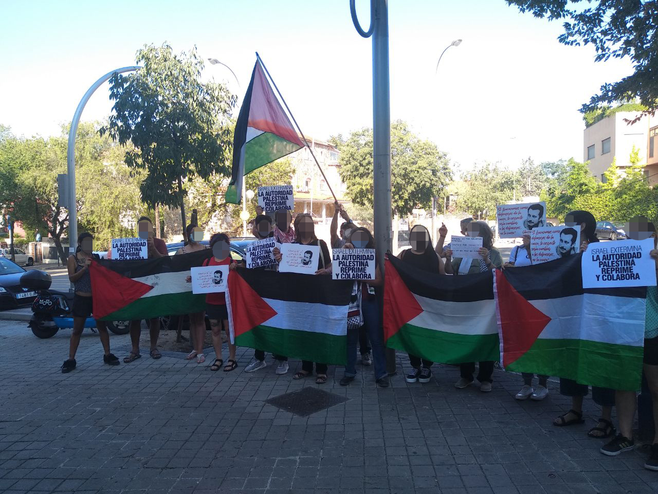 Ese mismo mes tuvo lugar el asesinato del activista palestino Nizar Banat a manos de la Autoridad Palestina, mercenarios subcontratados por el régimen israelí que no dudan en quitarse de en medio a toda persona palestina crítica con la “coordinación de seguridad” entre las fuerzas de seguridad de la Autoridad Palestina y el régimen de ocupación israelí, marco en el que se inscriben los Acuerdos de Oslo. En respuesta a su asesinato y a tantos años de traiciones a su propio pueblo, activistas de diferentes países nos concentramos enfrente de la Embajada palestina para señalar que la Autoridad Palestina cumple la función específica de proteger la existencia de la ocupación y controlar el pueblo palestino en Cisjordania. Actuando como agentes de la ocupación, la AP practica todas las formas de opresión y terror, incluidas las detenciones políticas, las redadas violentas y los asesinatos, contra el pueblo palestino para servir al proyecto colonial sionista y proteger los privilegios de la pequeña franja de beneficiarios de la Autoridad Palestina: la clase de Oslo afiliada al régimen sionista.